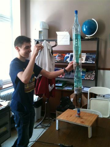 Vous pouvez voir qu'entre la coiffe et le réservoir d'eau, il y a un petit espace. Il est destiné à mettre de la charge utile. C'est mieux que contre le réservoir et ça m'a bien servit à ne pas faire de trou dedans (ne diminuant ainsi pas la résistance à la pression).