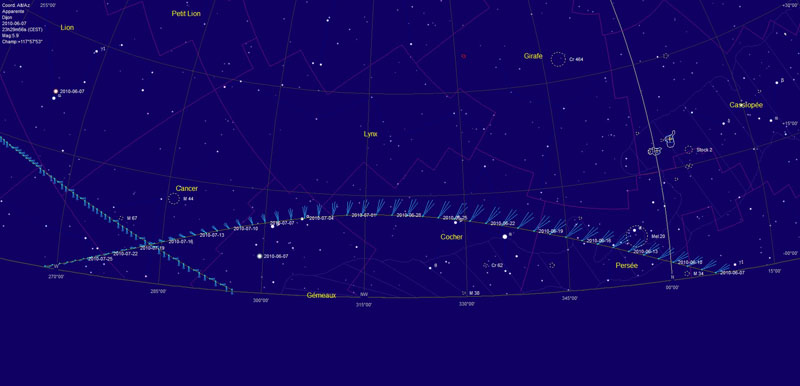 Une petite carte ici pour vous montrer son trajet (faite avec Cartes du Ciel