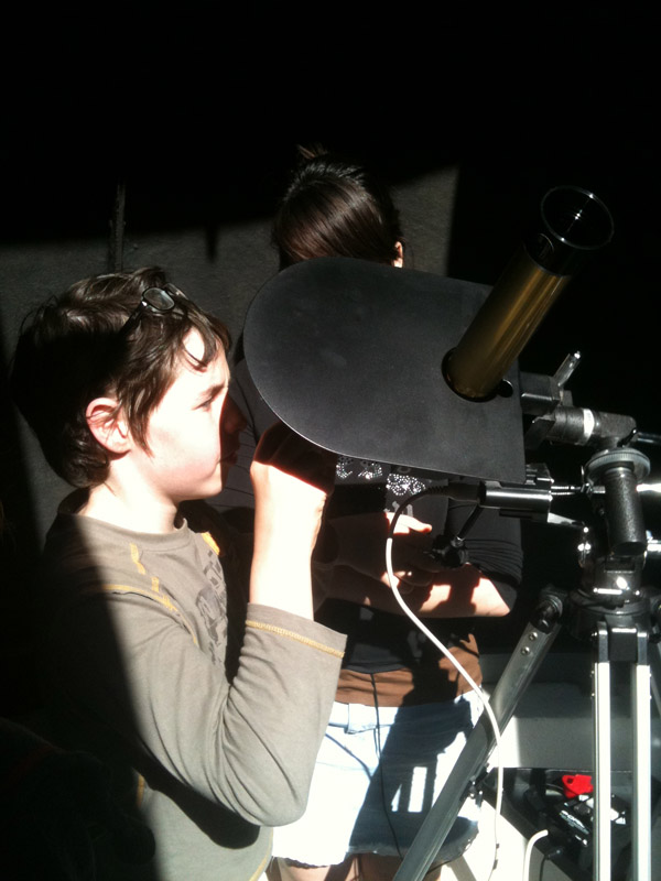 Nous avons observé les taches au 300 avec le filtre solaire. Il y en a pas mal, même si elles sont petites. Les jeunes ont fait des dessins.