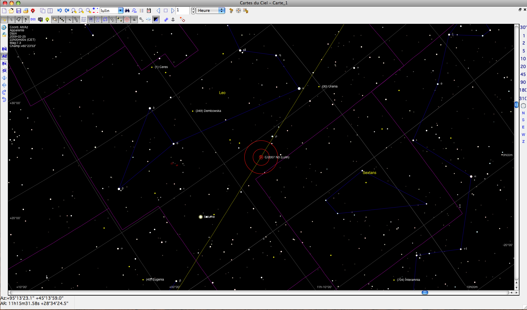 C/2007 N3 (Lulin) - Le 25 février, juste à côté de Saturne dans le Lion