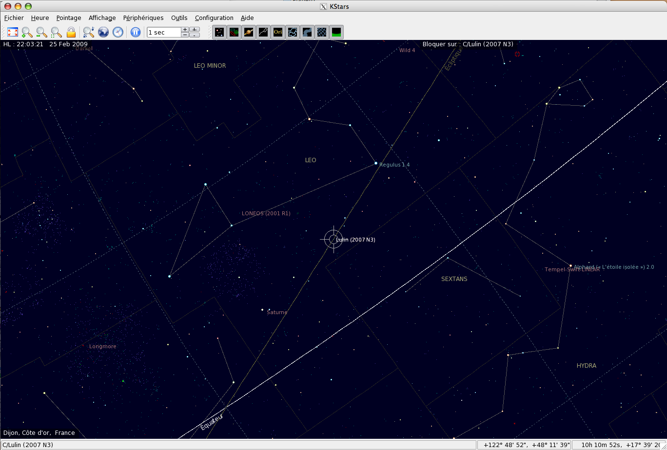 A 22h, elle est plus haute. Pour Stellarium, il faut éditer un ficher pour ajouter ses paramètres orbitaux à la main - compliqué :roll: