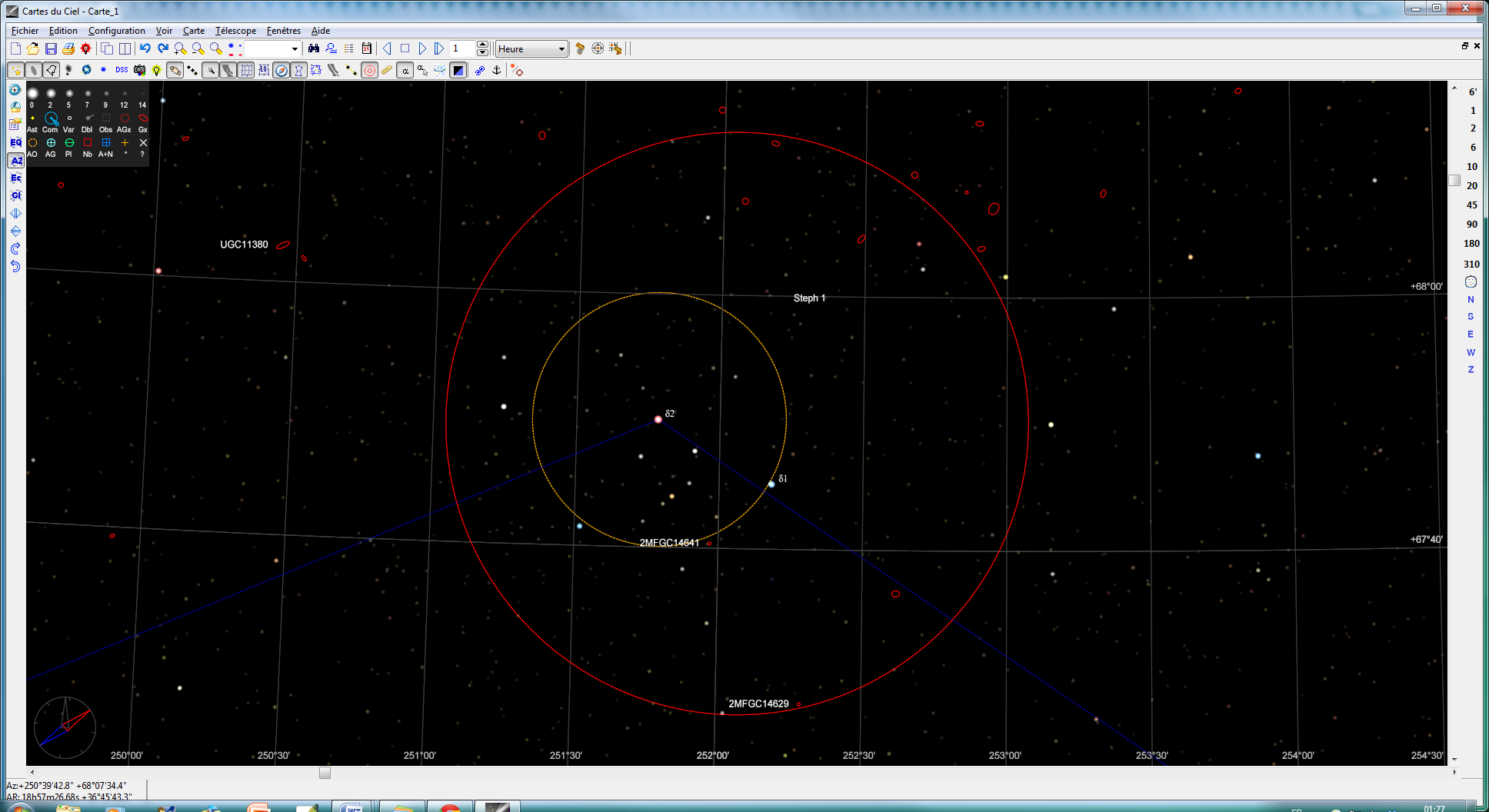 Du coup, je suis pas sûre qu'on ait pointé delta... Ce qui expliquerait l'absence de doubles. D'ailleurs, il me semble qu'on était plutôt sur un des sommets du triangle (epsilon) qui est une double normale, visible à l'oeil nu.