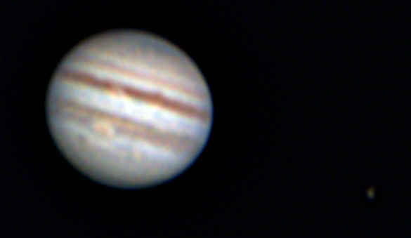 Encore Jupiter et Io, un peu plus tôt dans la soirée.On note la rotation de la planète, la tache rouge et moins au centre. Red Junior est toujours là.