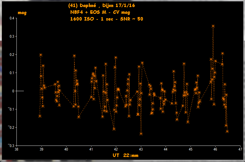 Bon, ma courbe de lumière est pas terrible, j'étais équipé APN pour d'autres observations et je ne peux pas faire de rafale en continu à 1 sec / image en RAW avec l' EOS M, il y a des trous dans la courbe ! Mais je doute que la bête soit passée par un de ces trous...
