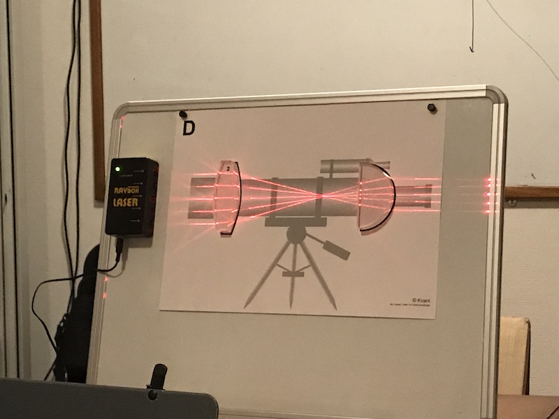 Une petite photo de la séance de la semaine dernière où on montrait les bases de l'optique avec des lasers et des bouts de verre.