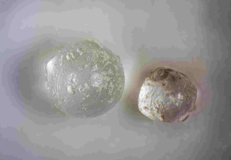 L'analyse des billes suggère qu'il s'agit de microtectites (https://en.wikipedia.org/wiki/Tektite), des particules qui se forment lorsque l'impact explosif d'un objet extraterrestre envoie des débris fondus dans l'atmosphère où ils se refroidissent et se recristallisent avant de retomber sur Terre.