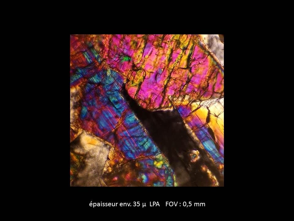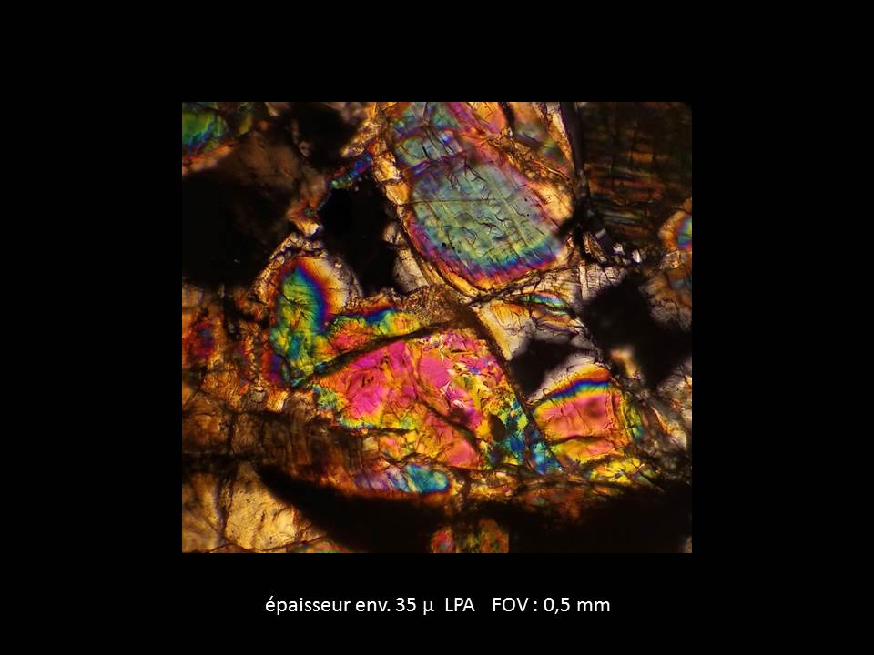 je propose de réunir tes plus belles photos de lames minces et de les légender pour en faire une exposition qui pourrait compléter ce qu'on fait déjà sur le thème des météorites