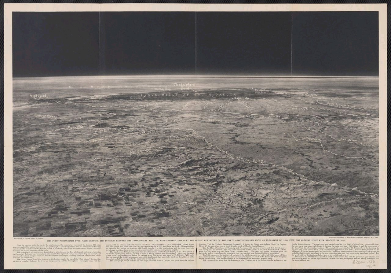 L'image, prise à environ 22 km (72 395 pieds) au-dessus de la surface de la Terre à partir d'un point à environ 55 km au sud de Murdo, dakota du Sud, regarde vers l'ouest les Black Hills du Dakota du Sud et les montagnes Big Horn.