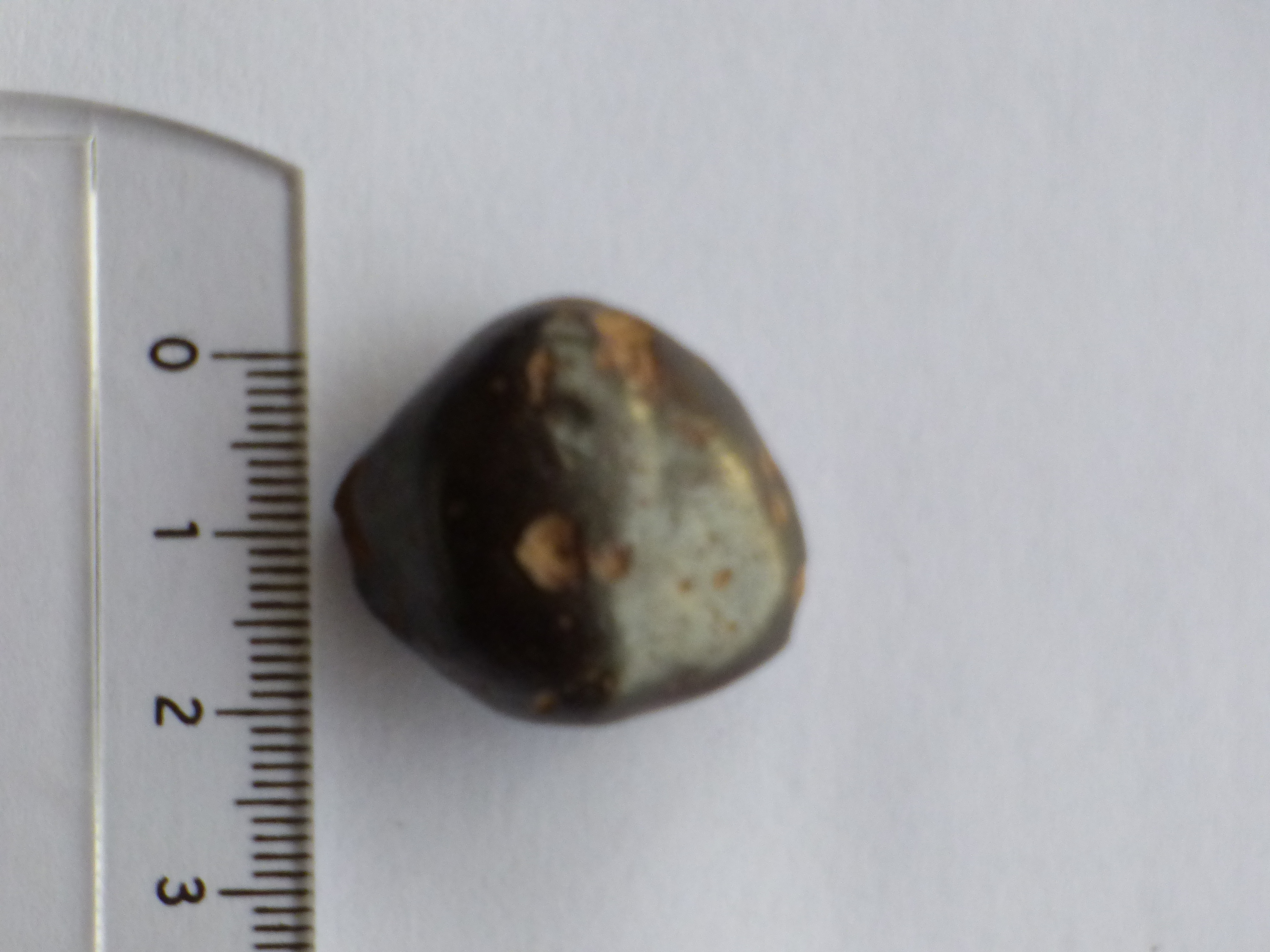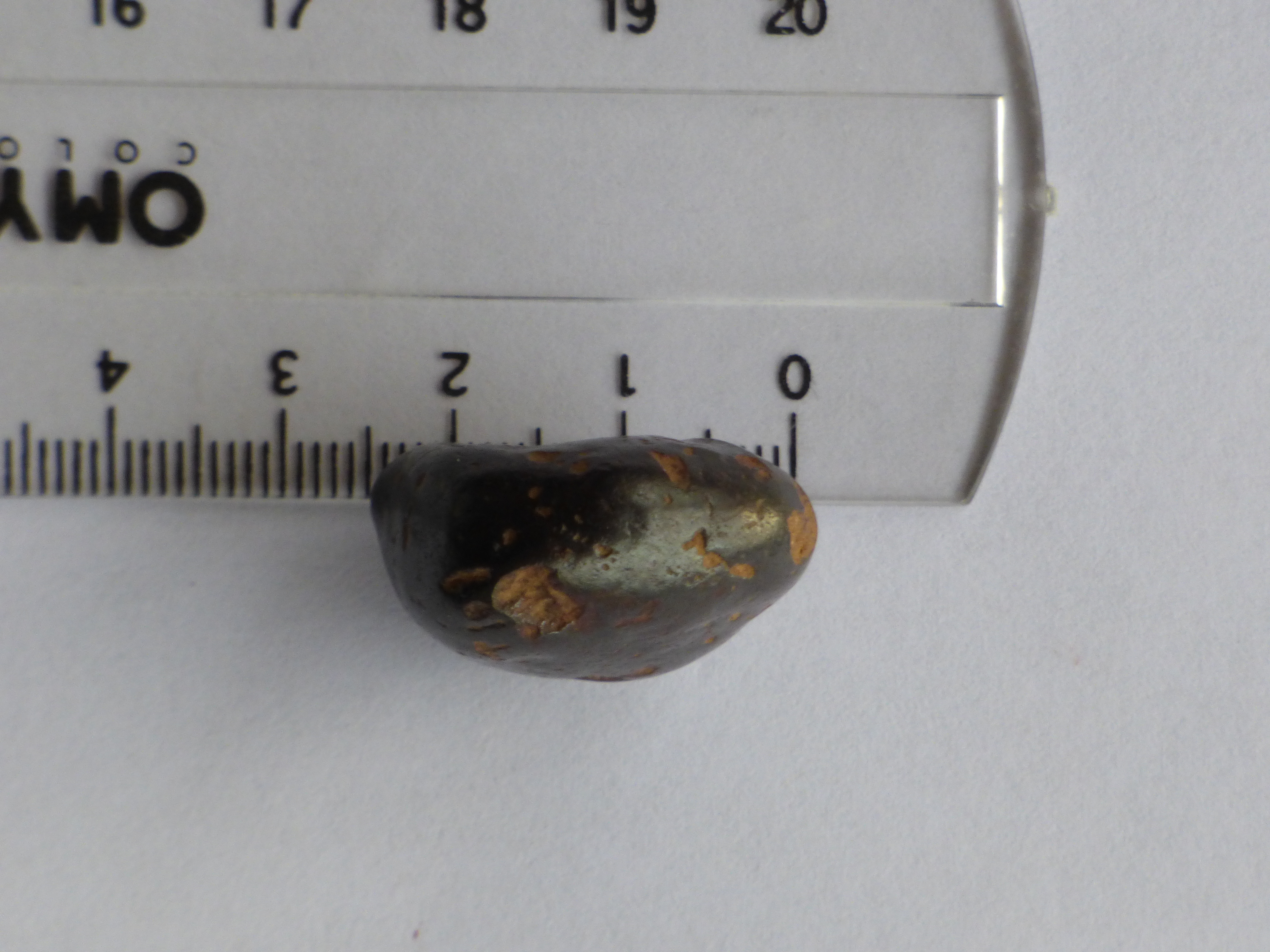 Suite à la visioconférence d'Henri ce vendredi sur les météorites, je me suis souvenu que j'avais trouvé dans un sentier un caillou bizarre qui avait les caractéristiques décrites par Henri sur les météorites... Sur l'extérieur, lisse, brillante, sombre avec des arrêtes arrondies, des parties un peu enfoncées et vers les petits éclats,à l'intérieur, une autre couleur... Cela donne l'impression que l'extérieur est "cuit" ou "caramélisé". Ce caillou semble lourd dans la main bien qu'il ne pèse que 15g environ.