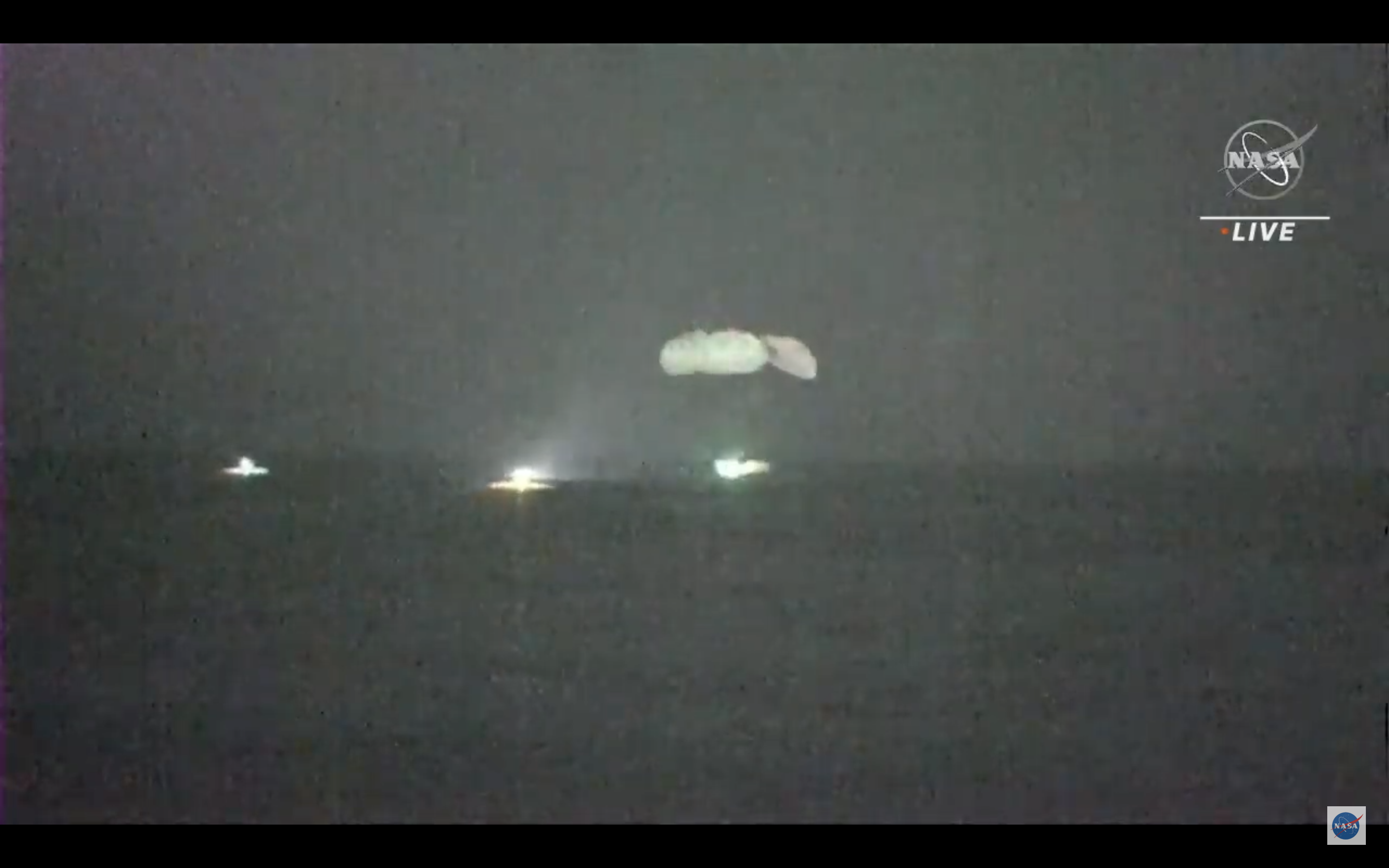 Retour de nuit dans l'Atlantique (le premier "splashdown" nocturne depuis Apollo 8 en 1968) pour Michael Hopkins, Victor Glover, Shannon Walker et Soichi Noguchi à bord du Crew Dragon Resilience.