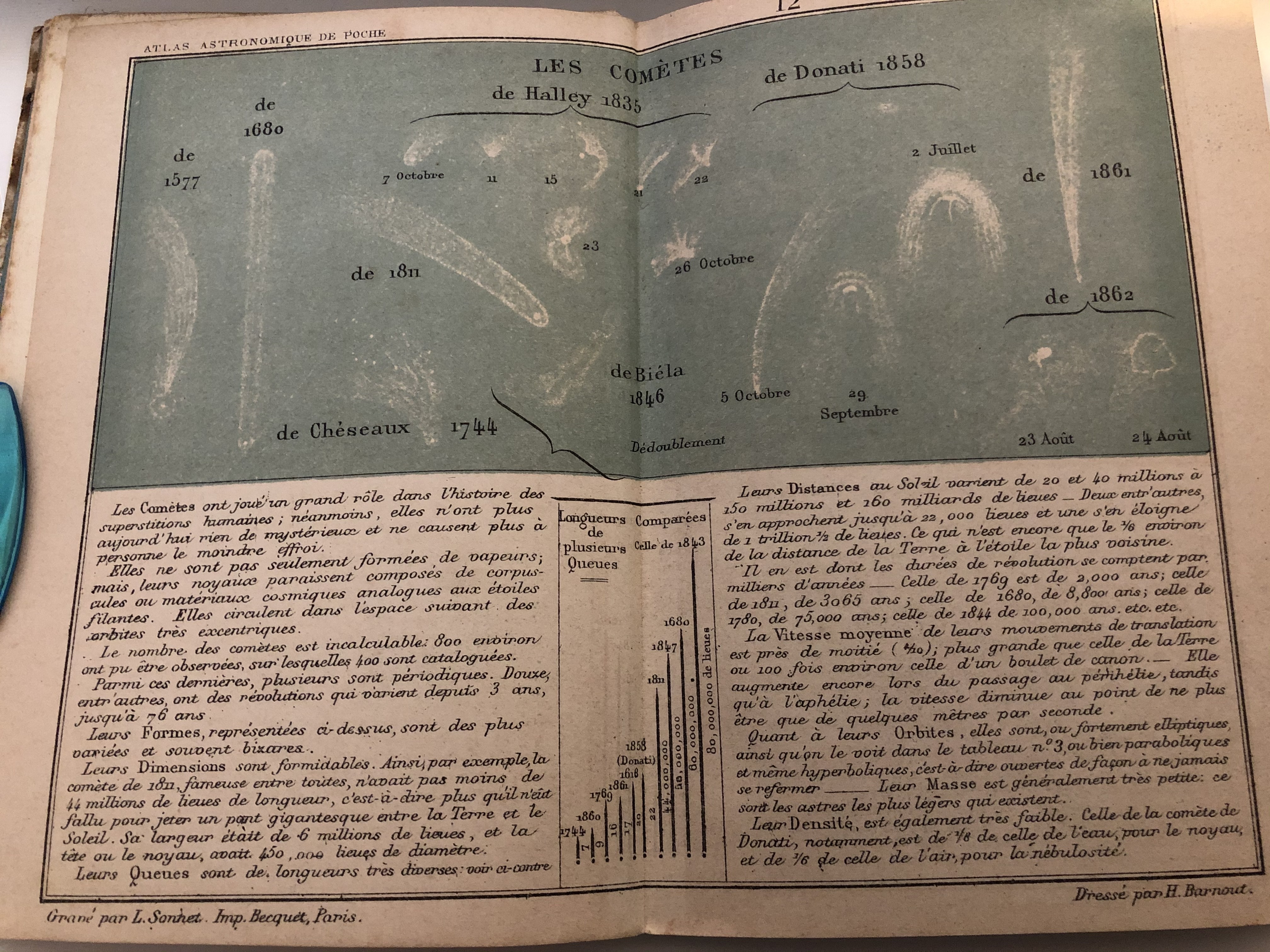 Cet Atlas de poche contient l’essentiel des grandes notions astronomiques de l’époque : le système solaire, les comètes, les phases de la Lune, les cartes du ciel ou encore les nébuleuses.