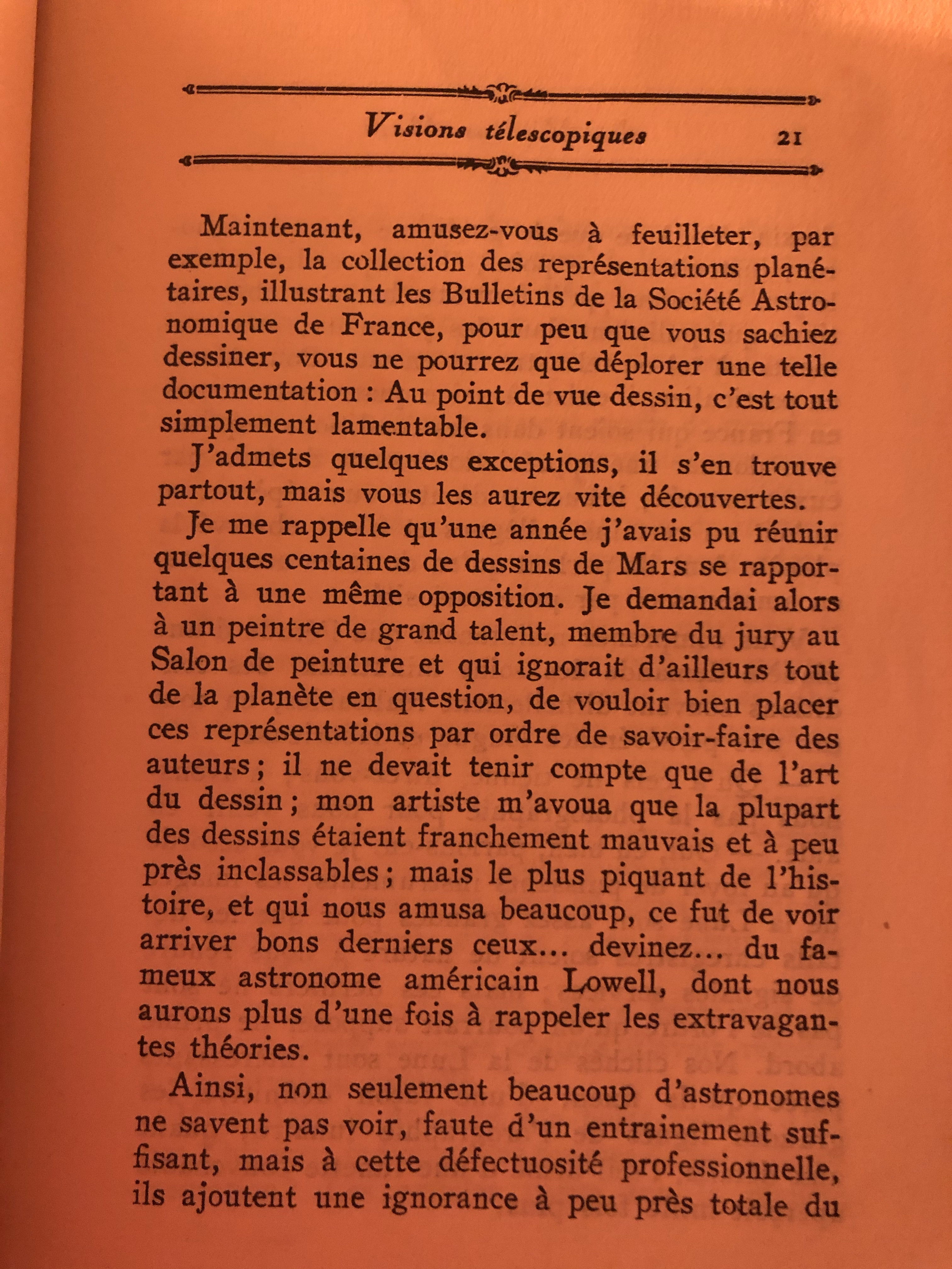 Et puis quelques passages assez croustillants ou il n’hésite pas à « fusiller » quelques collègues par rapport à leurs dessins et notamment Lowell (on sent bien la rivalité franco-américaine).