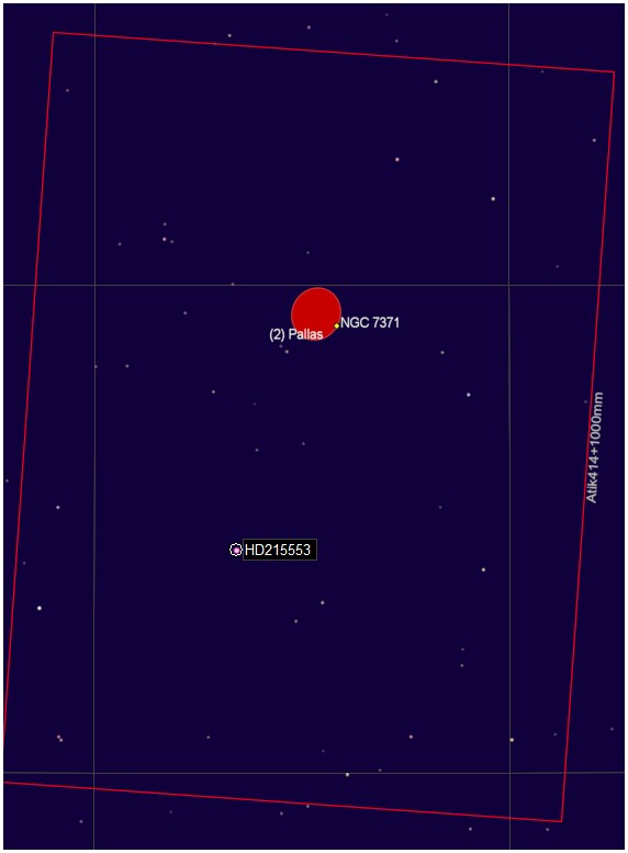 Pas beaucoup d'écart, il est dans le coin, mais c'est si difficile de connaître les positions exactes des astéroïdes ? Pourtant Pallas est assez gros !