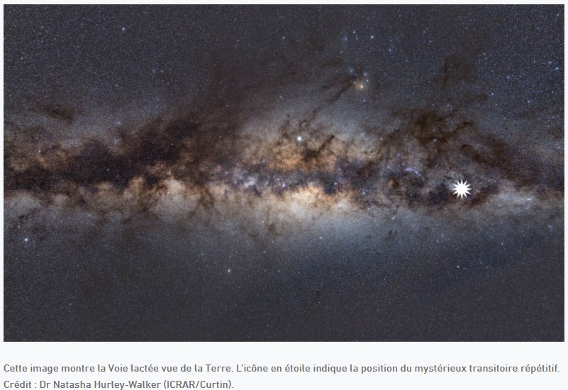 Le radiotelescope MWA (Murchison Widefield Array) a détecté une source émettant de l’ordre d’une minute toutes les 20minutes environ.