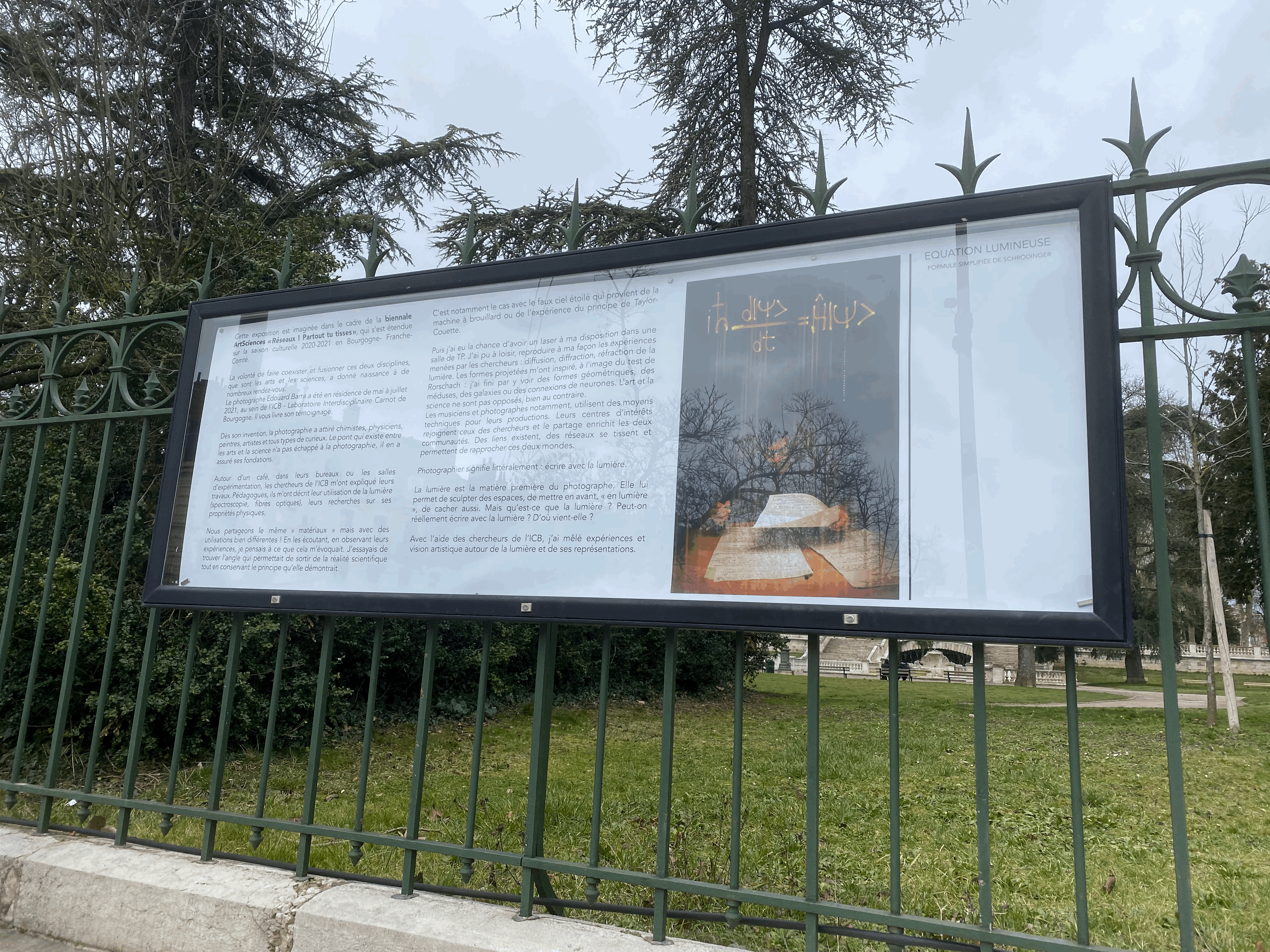 La très belle expo photo d'Edouard Barra réalisée au laboratoire ICB orne les grilles du square Darcy à Dijon (elle avait précédemment été exposée à l'Atheneum). Un beau mariage arts-science.