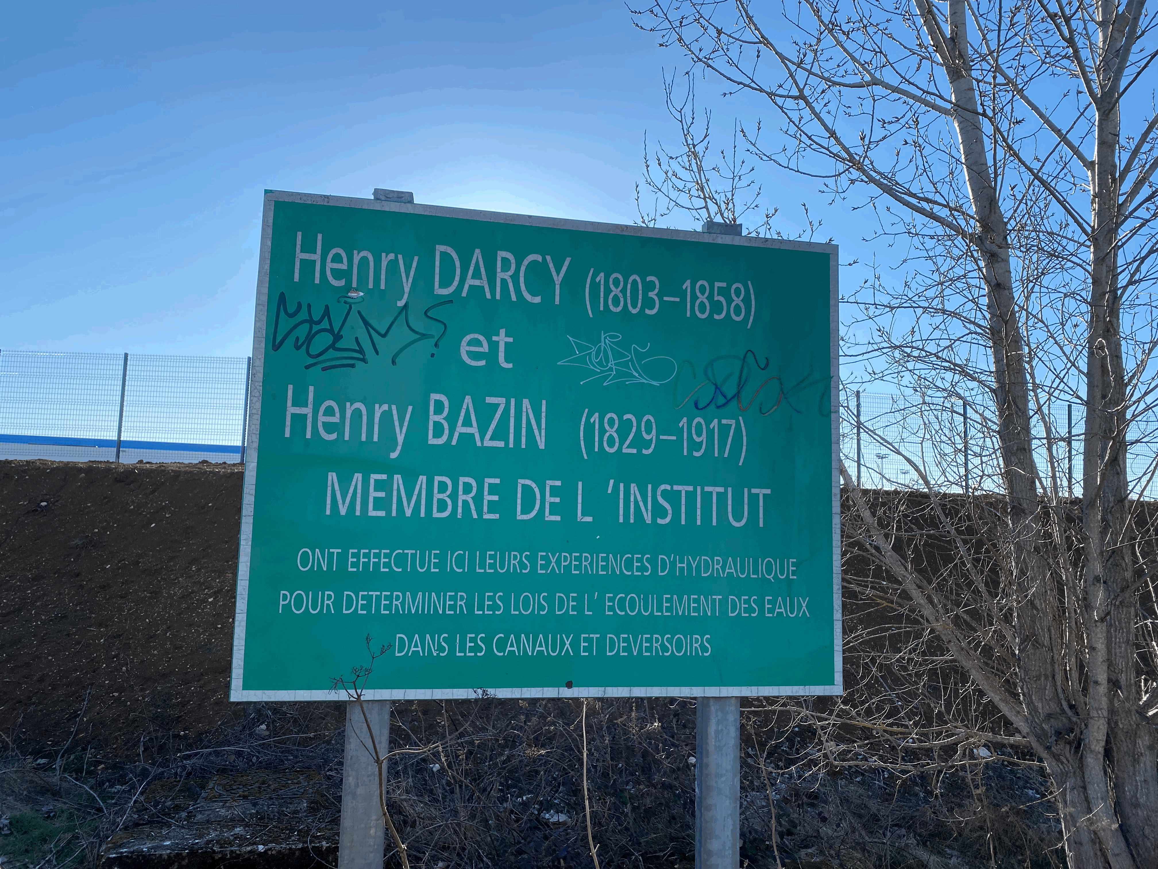 Reprenant une expérience de 1834 de l'écossais John Scott Russel, les ingénieurs Henry Darcy et Henry Bazin font près de Dijon, vers la fin du 19ème siècle, des expériences d'hydrodynamique. Elles portent en particulier sur la propagation d'ondes (de "vagues") solitaires appelées solitons. Ces expériences ont été réalisées dans un petit canal parallèle au canal de Bourgogne, à quelques centaines de mètres du Parc de la Colombière.