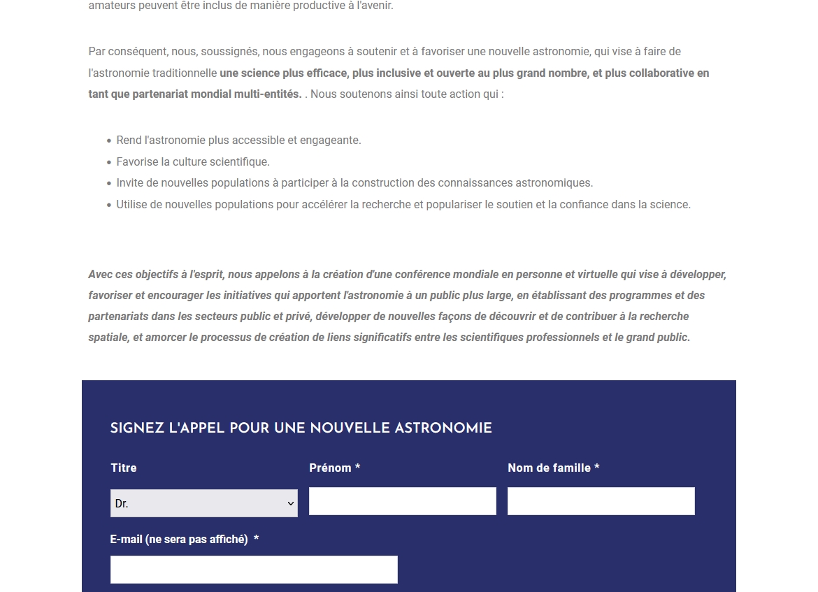 D'habitude, je ne transmets pas de pétitions en ligne, mais... celle là a comme but la promotion astronomie auprès d'un public encore plus large.