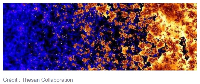 Les simulations informatiques représentent une avancée monumentale dans la simulation de la formation des premières galaxies et de la réionisation – le processus par lequel les atomes d’hydrogène neutres dans l’espace ont été transformés en hydrogène chargé positivement, ou ionisé, permettant à la lumière de se propager dans tout l’univers.(https://fr.wikipedia.org/wiki/R%C3%A9ionisation)