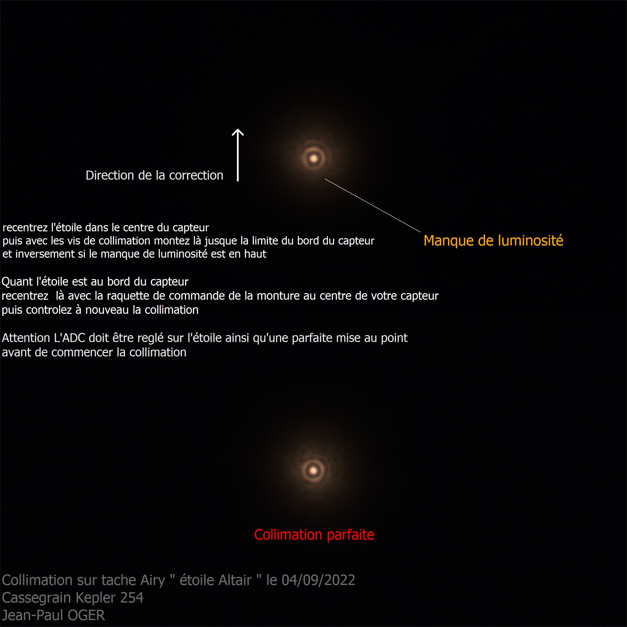 Petit mémo d'un excellent astrophotographe sur la collimation avec la tache d'Airy !