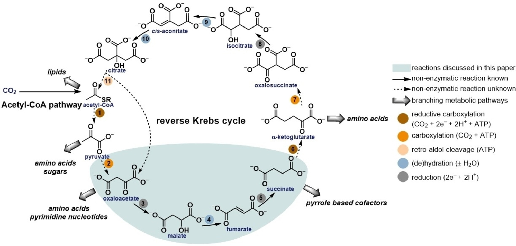 Ils se sont concentrés sur le cycle de Krebs inverse((https://www.inc.cnrs.fr/fr/cnrsinfo/com ... le%20cycle.), un ensemble de réactions essentielles à la vie qui produit des molécules utilisées dans d'autres voies métaboliques pour produire toutes les molécules biologiques.