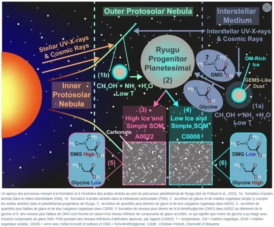 Dans l’ensemble, les résultats de l’étude indiquent que de légères différences dans les conditions présentes lors de l’altération aqueuse sur les planétésimaux peuvent avoir des effets importants sur les abondances finales des acides aminés. Certains acides aminés peuvent être détruits et d’autres créés, ce qui affectera à son tour la disponibilité des acides aminés à l’origine de la vie sur Terre.
