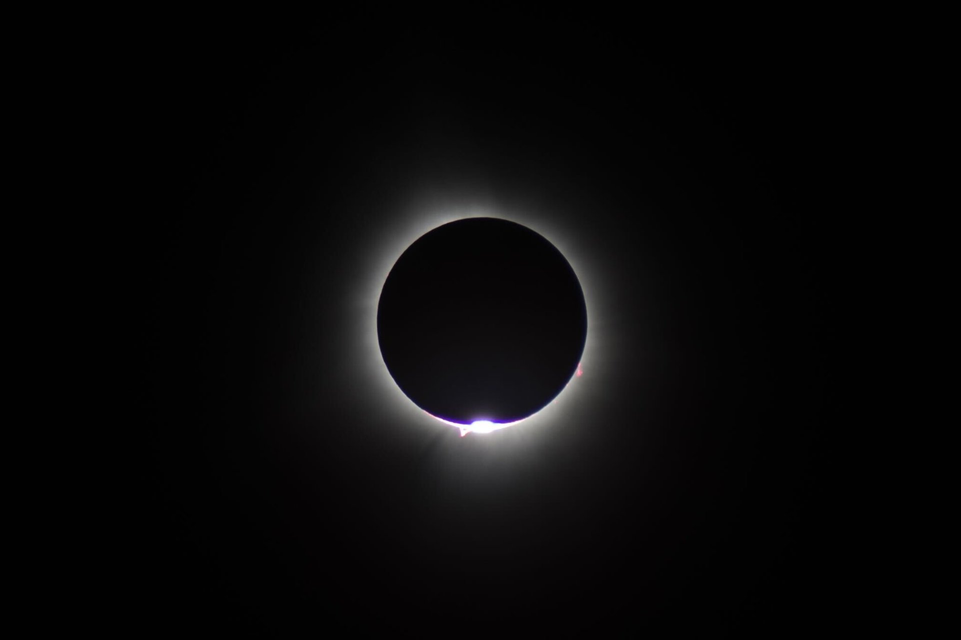 Ce sont des photos d'amateurs provenant du réseau Slack. On voit bien une protubérance solaire et les grains de Bailly dus au relief de la Lune :