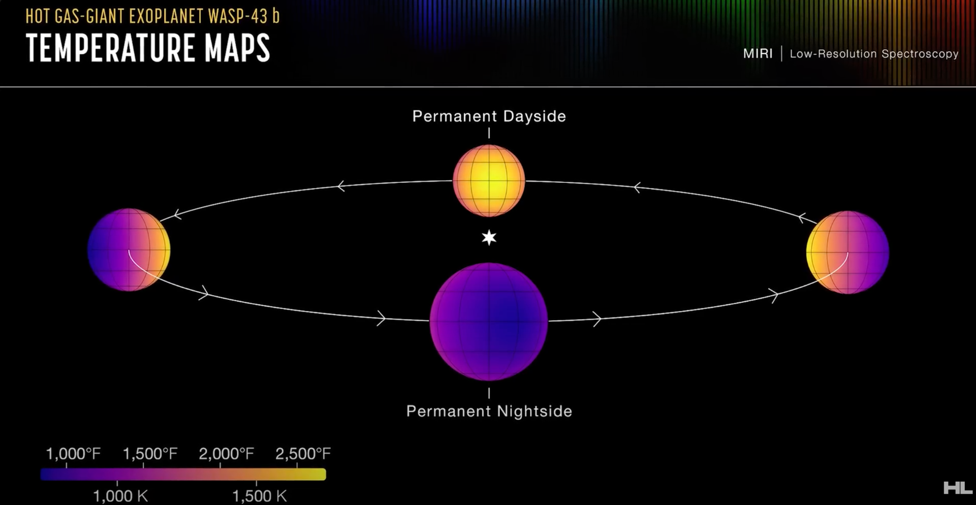 Wasp 43 b serait en rotation synchrone avec son étoile, donc toujours la même face exposé à son soleil
