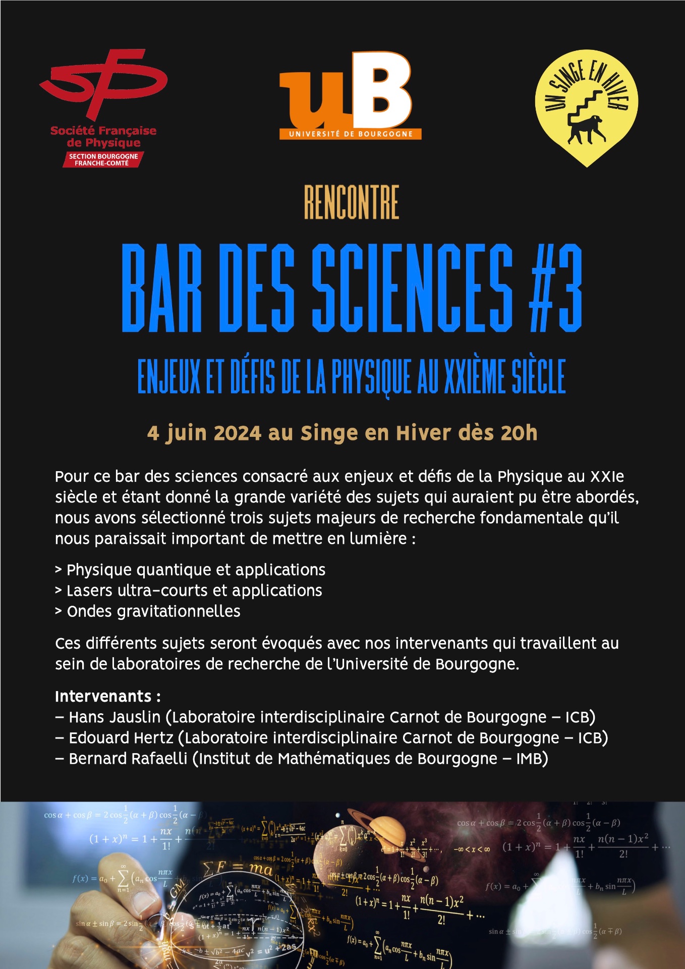 Mardi 4 juin à 20h, un Bar des Sciences passionnant sur la physique d'aujourd'hui à Un Singe en Hiver - Fabrique de bières et de curiosité avec la Société Française de Physique !