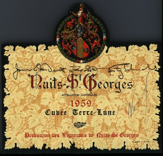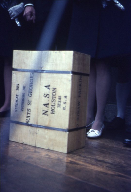 Scott "a eu l'intention de déposer une étiquette".Bottles of the special cuvée were presented to Dave Scott and the crew of Apollo 15 by Mayor Bernard Barbier in May 1971 with the intention that one might be brought to the moon! As a compromise, it would appear Dave intended to deposit a label from the Cuvée 69 Terre-Lune (and possibly earth from Texas) in the vicinity of the St. George crater in honor of Jules Verne and Nuits-Saint-Georges.
