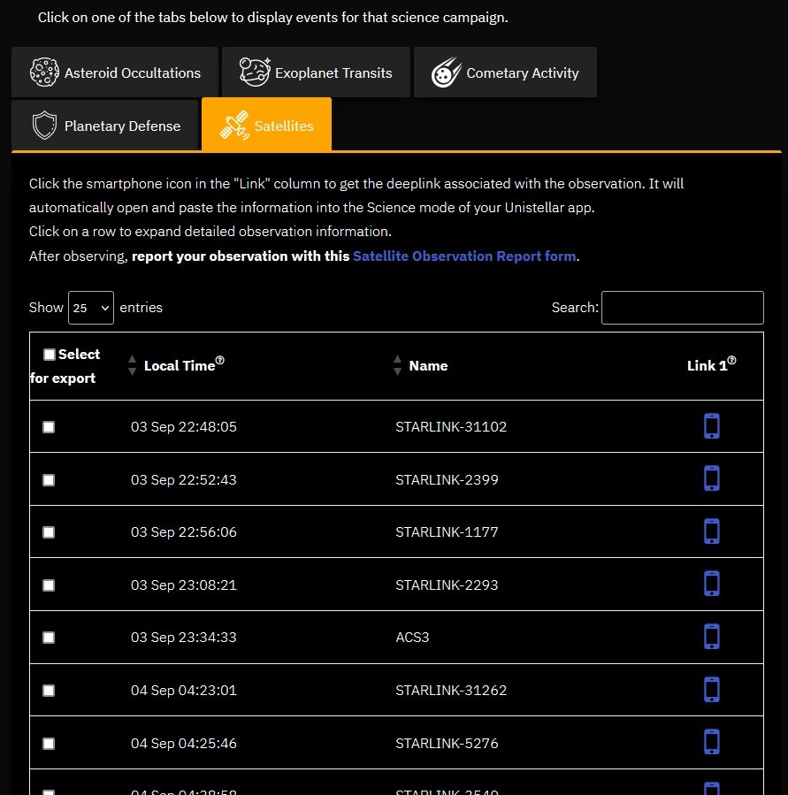 Pour avoir les éphémérides, différents sites peuvent vous indiquer les heures de passage en fonction de votre lieu. Parmi ceux-ci, Unistellar propose ce service pour pointer votre télescope eVscope ou non.