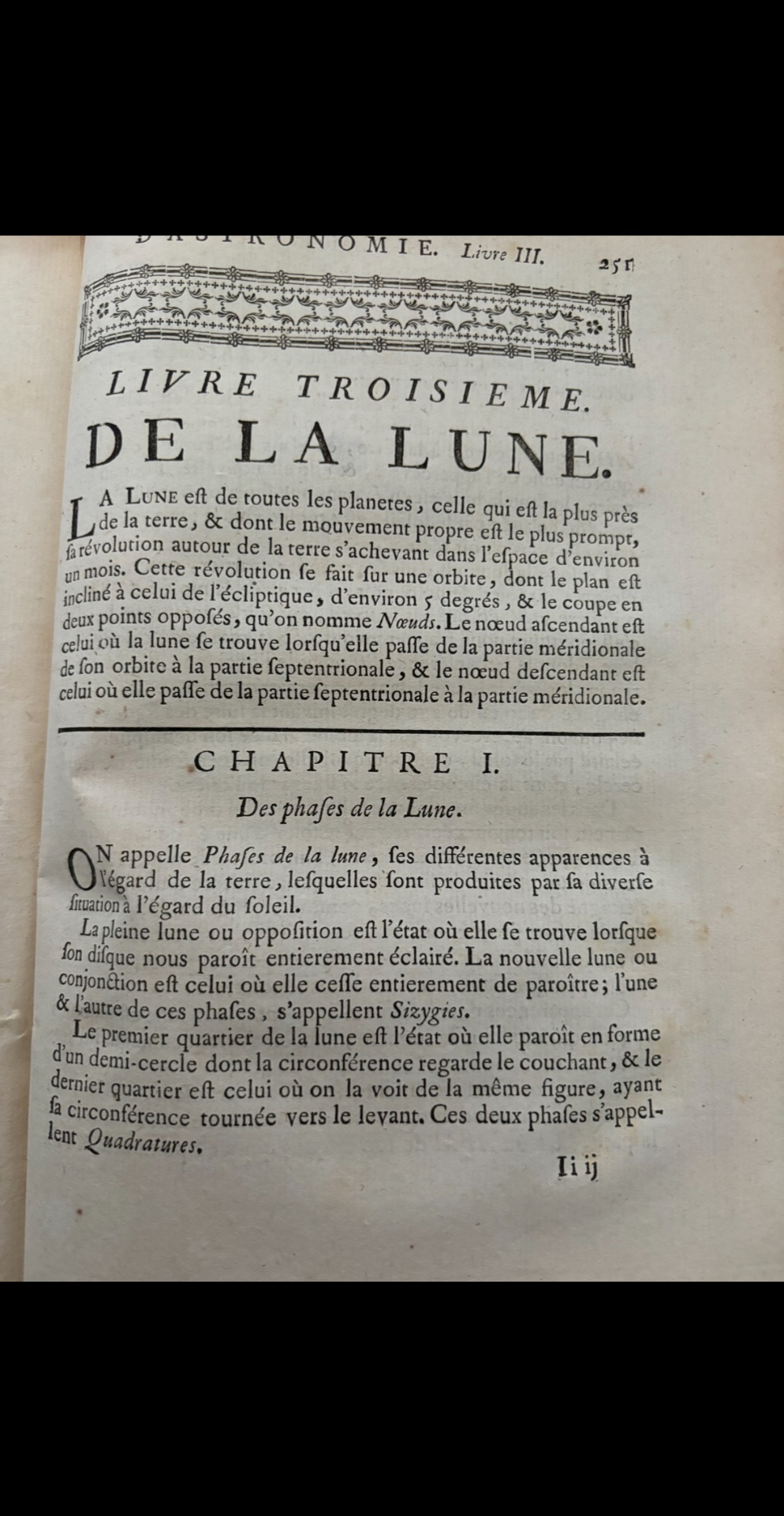 Il a écrit plusieurs livres dont celui-ci : "Elemens d'astronomie" paru en 1740. Celui-ci a donc presque 300 ans.