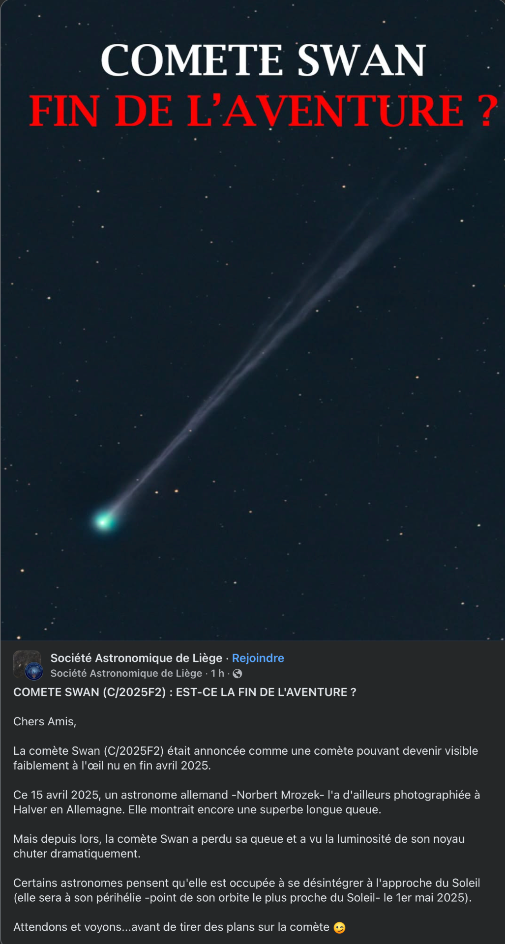 Re: C/2025 F2 Swan