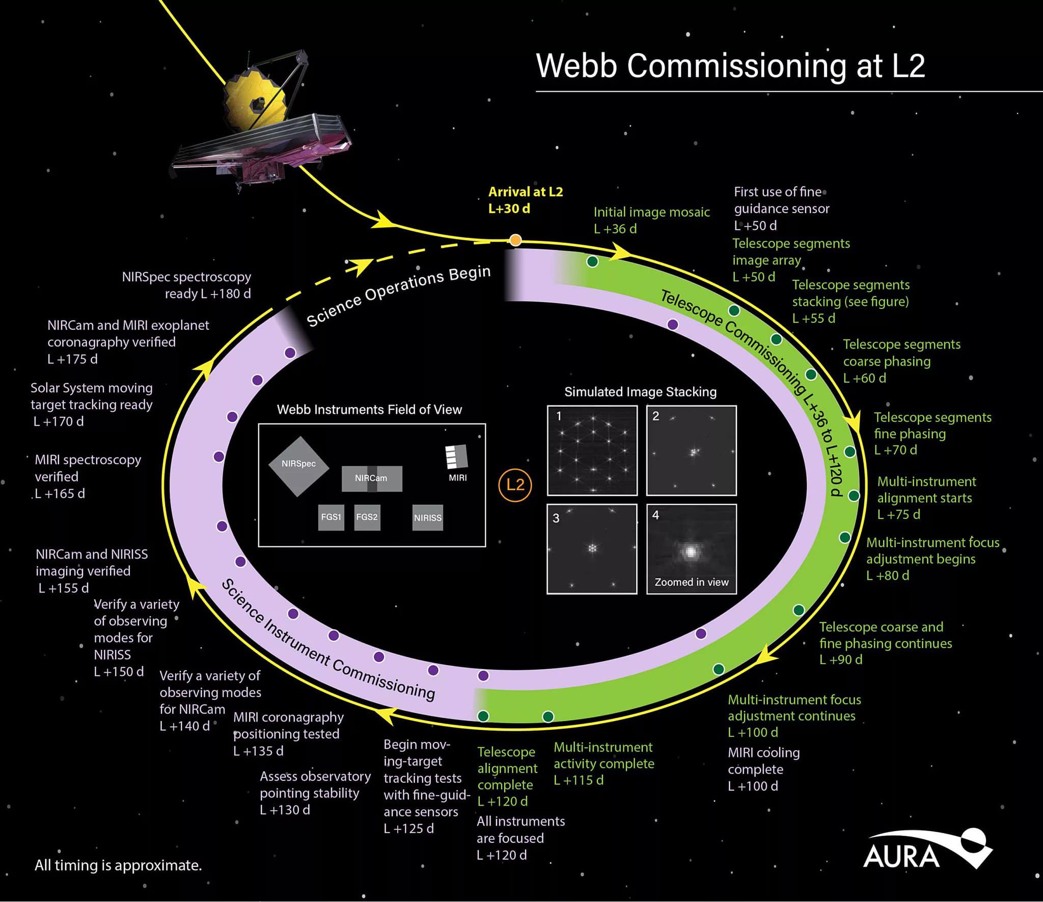 Le détail de la longue phase de réglages du JWT qui débutera à son arrivée autour du pont L2 :