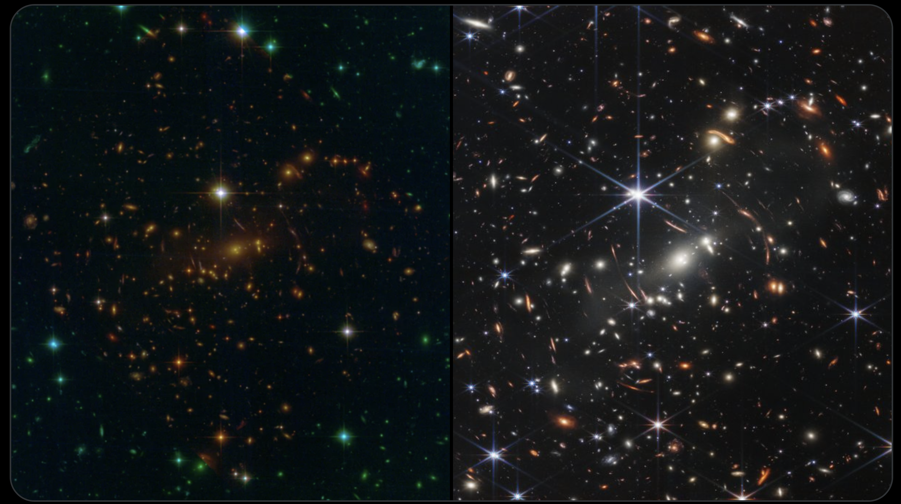 À gauche Hubble, à droite le JWST ! La comparaison est effectivement éclairante ;-)