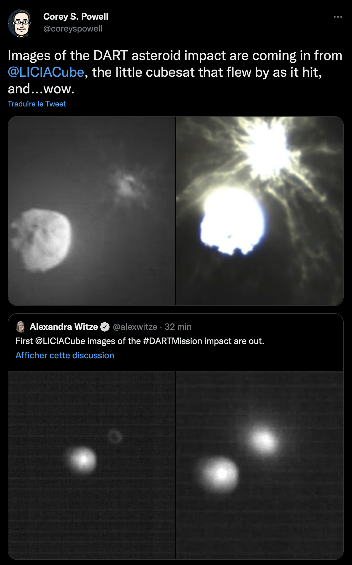 Re: 26 septembre c'est le DART Impact Day en live ! Impact sur Dimorphos