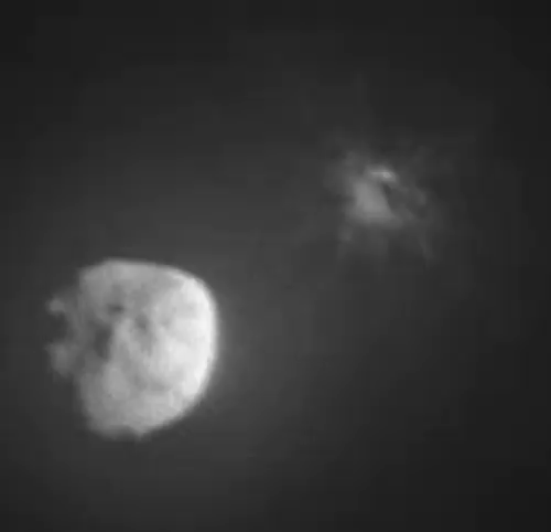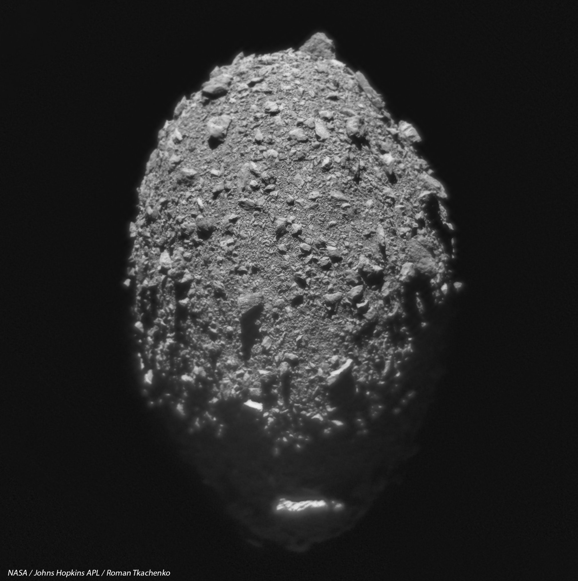 Image retravaillée qui montre la partie dans l'ombre de Dimorphos et donc la forme complète de la petite lune avant l'impact :