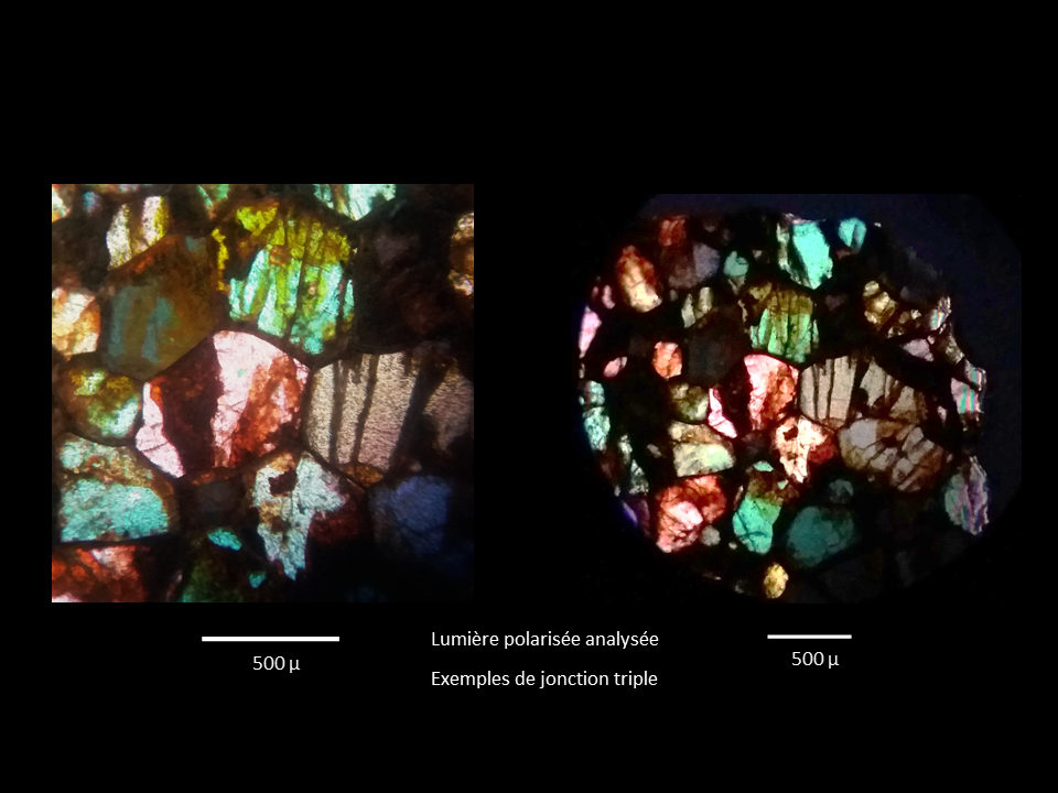 Les inclusions réfractaires dont je parle sont ces structures claires, de forme variable. Dans l'histoire de leur formation, elles proviennent des gaz et grains du disque solaire.
