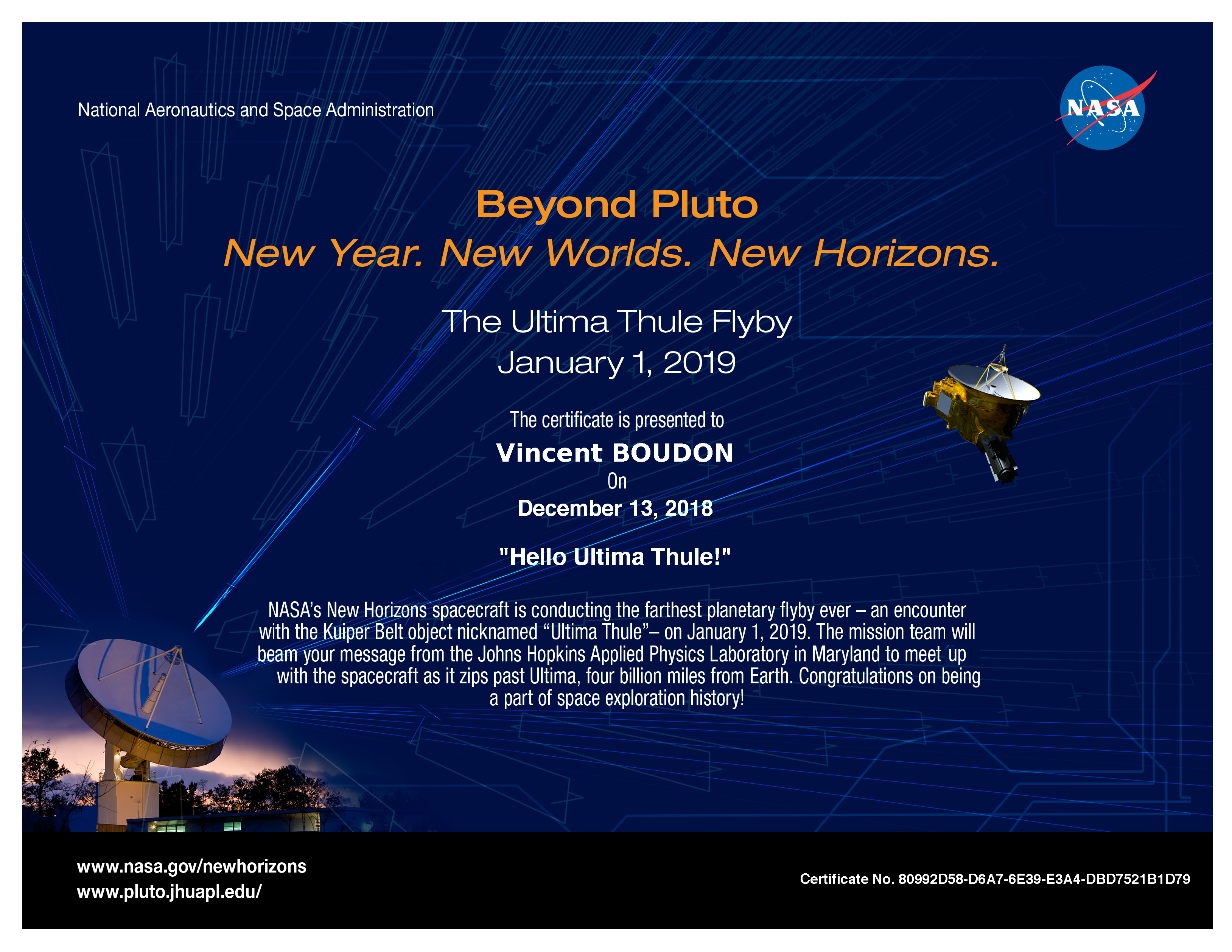 Pour le survol d'Ultima Thulé le 1er janvier prochain, la NASA vous propose d'envoyer un petit mot à New Horizons !