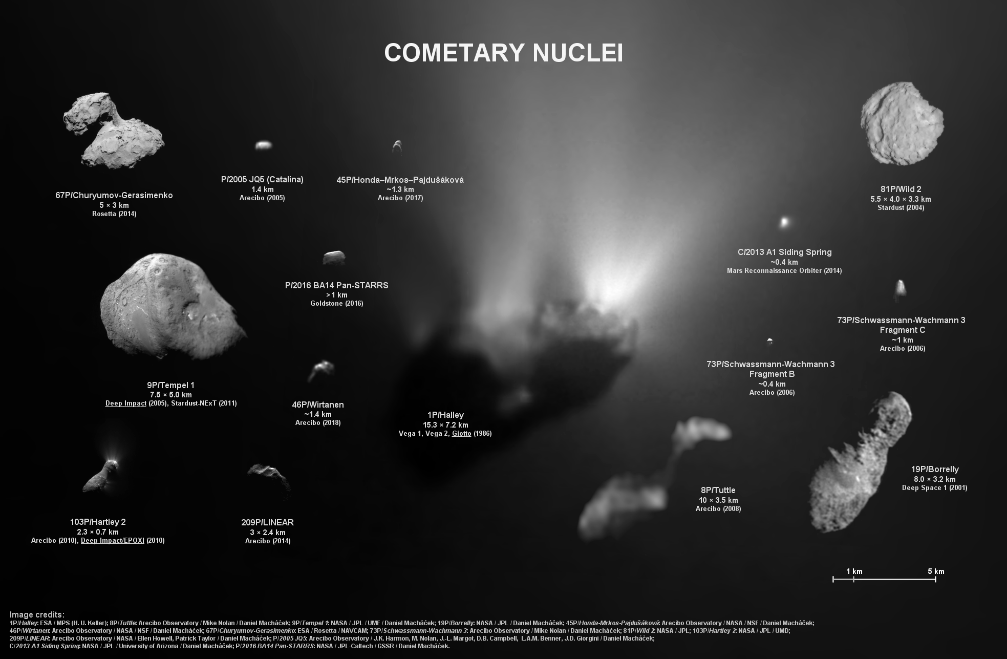 Un montage sympa des noyaux de comètes connus, que ce soit par des sondes spatiales ou par imagerie radar …