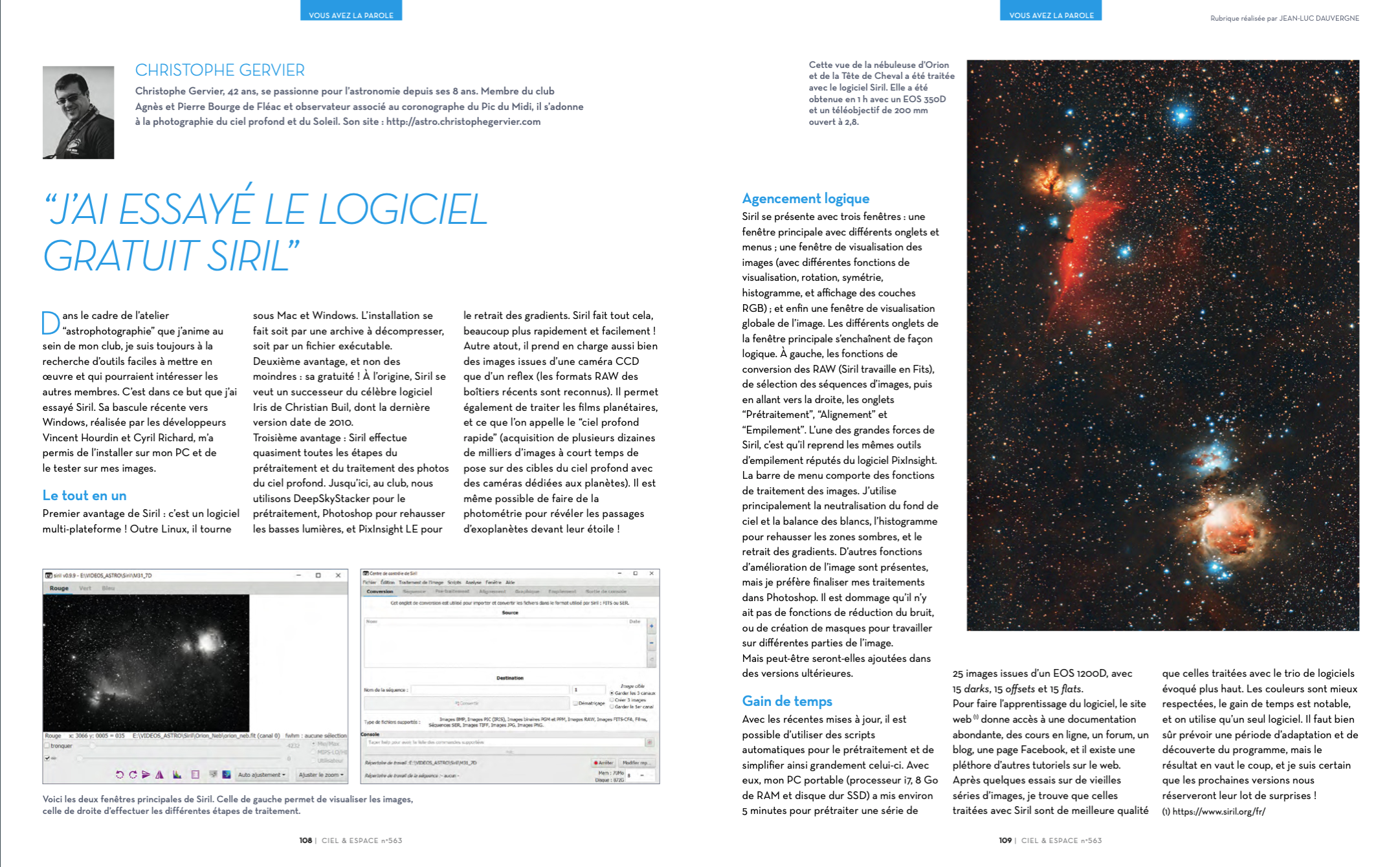 Un article sur Siril dans le dernier Ciel & Espace.