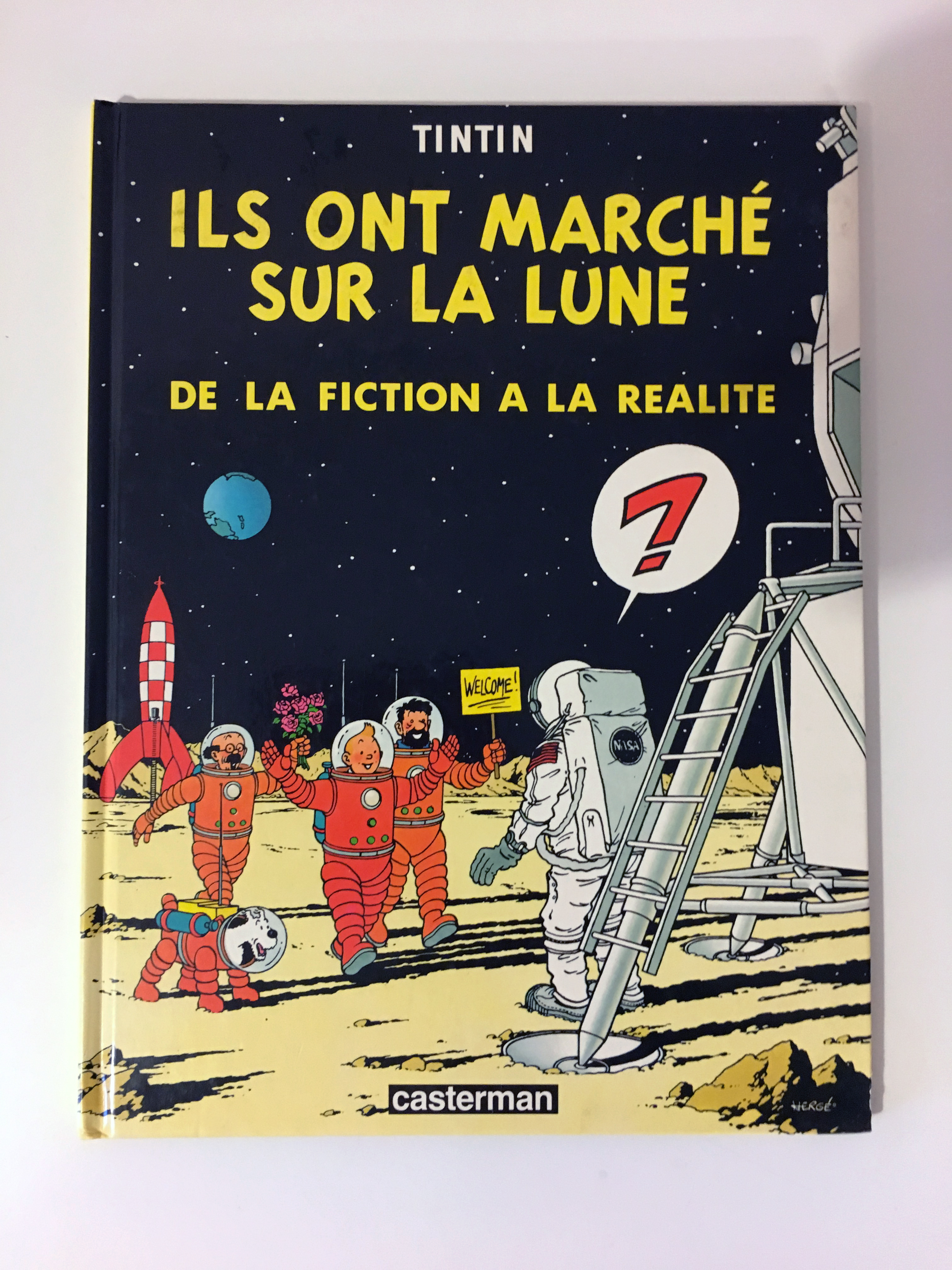 J'ai trouvé l'album correspondant, qui fait le parallèle entre Tintin et Apollo. Il date de 1985. Très intéressant.