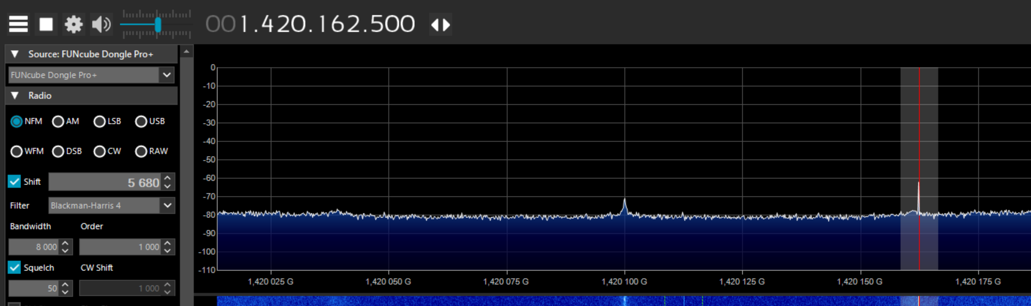 Voilà ce que j'observe en me calant sur la fréquence de 1420,40575 MHz. Un régal.