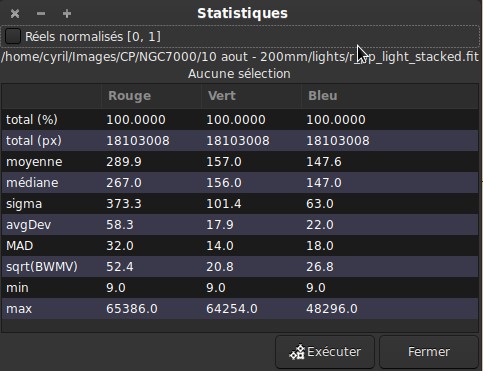 Statistiques sous Siril