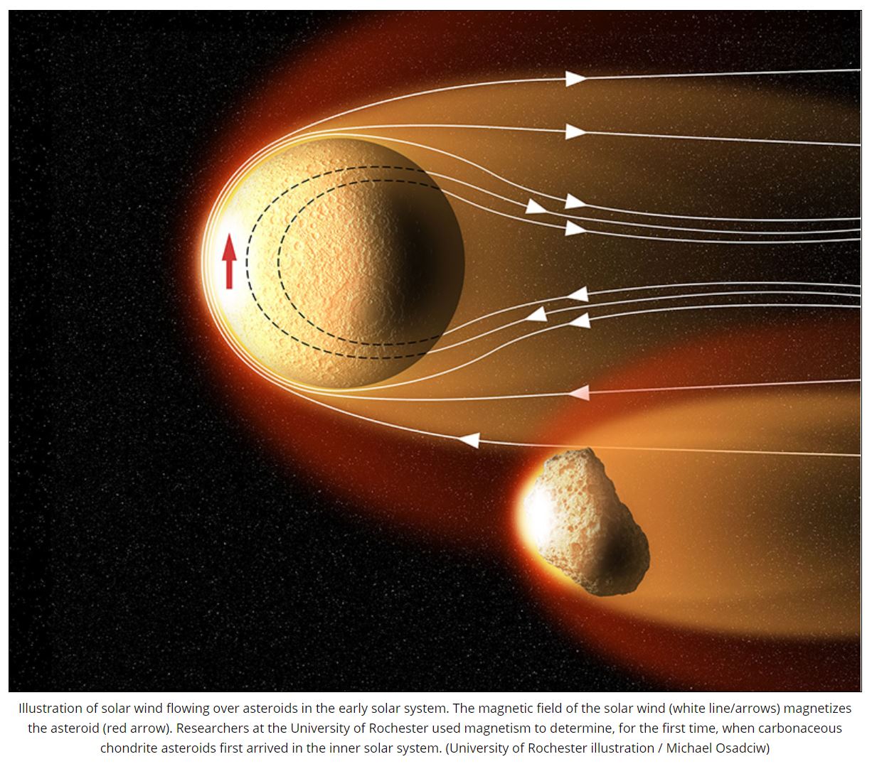 Arrival and magnetization of carbonaceous chondrites in the asteroid belt before 4562 million years ago : https://www.nature.com/articles/s43247-020-00055-w