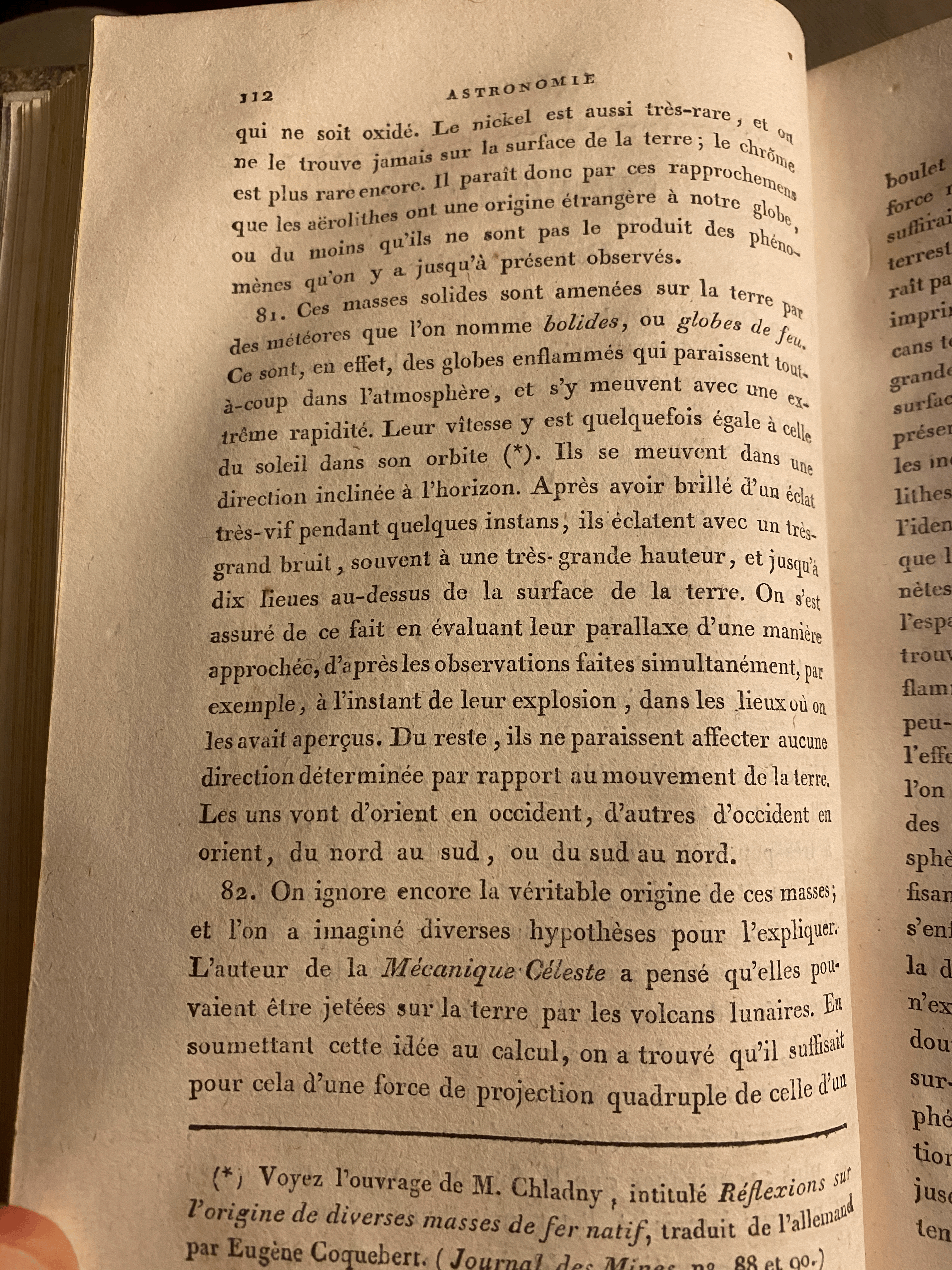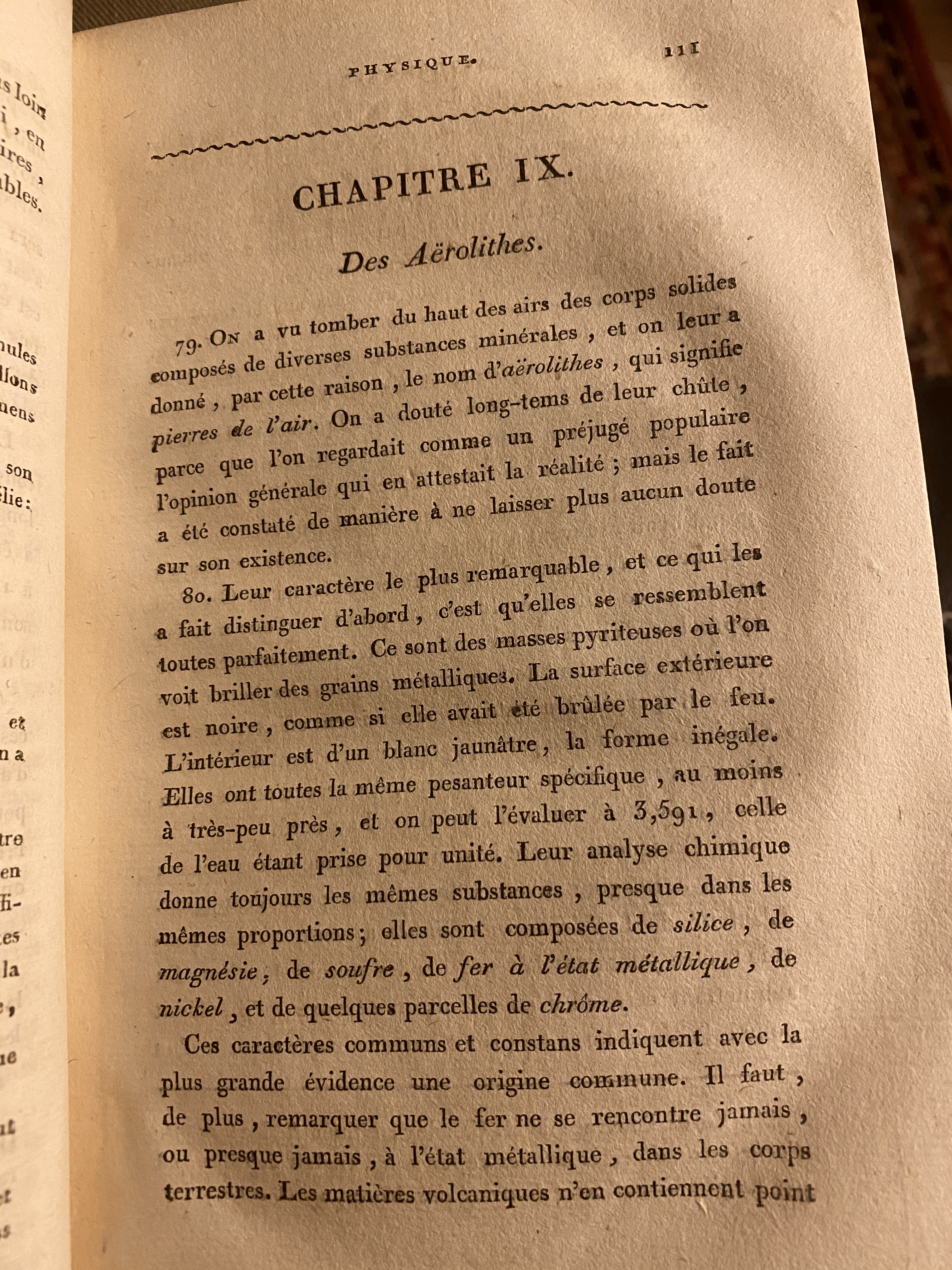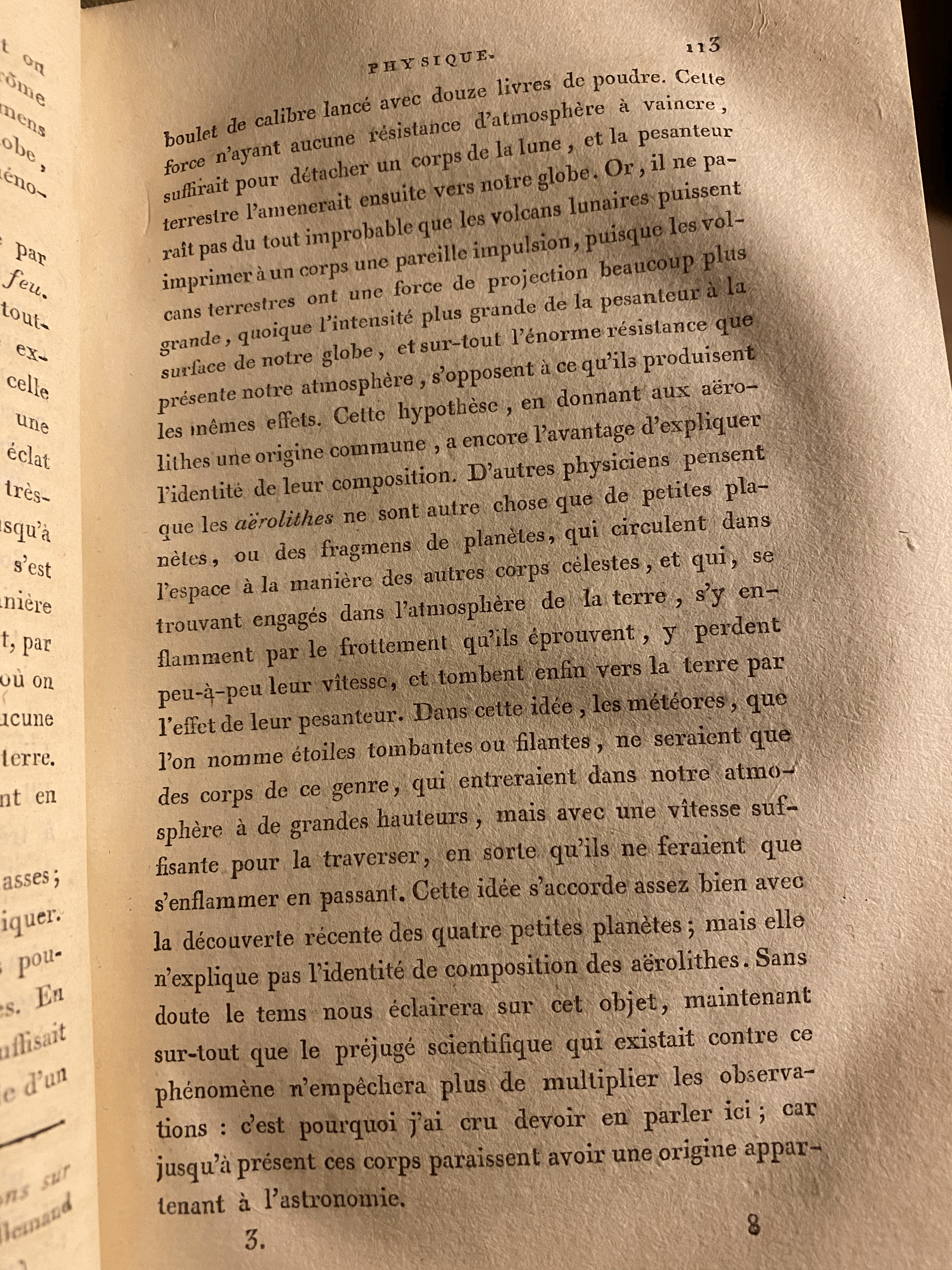 En 1810, Jean-Baptiste Biot, dans son "Traité Élémentaire d'Astronomie Physique" émet l'hypothèse que les "pierres de l'air" viennent de l'espace et "paraissent avoir une origine appartenant à l'astronomie".