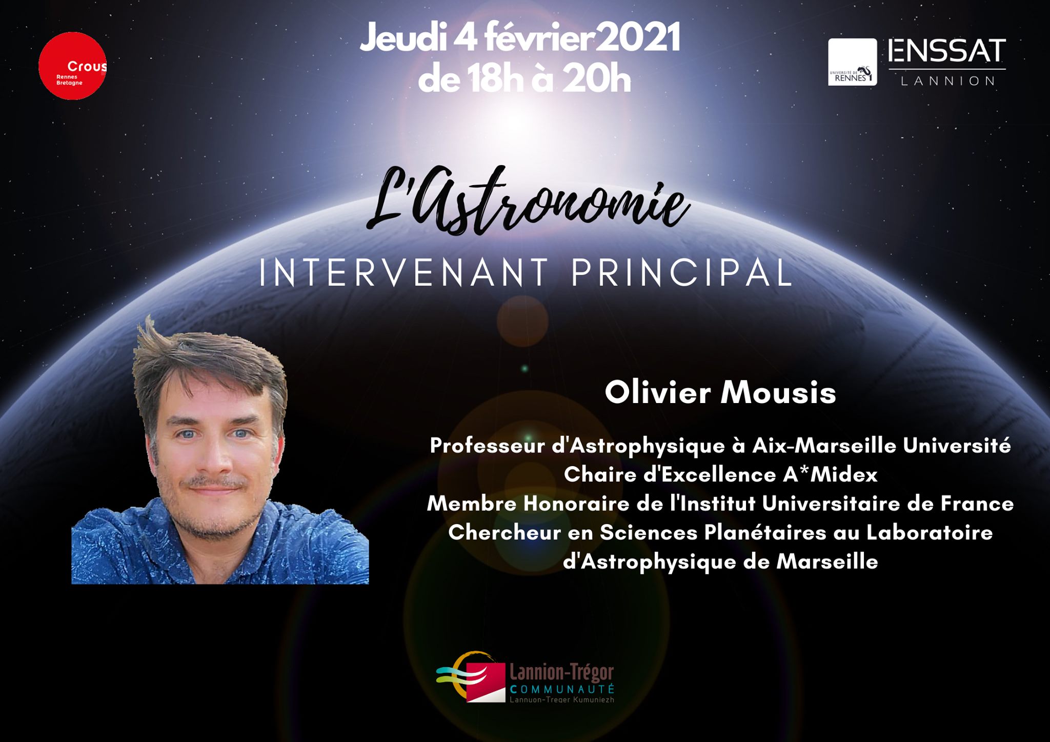 L'intervenant principal sera notre amis Olivier Mousis, du LAM à Marseille.