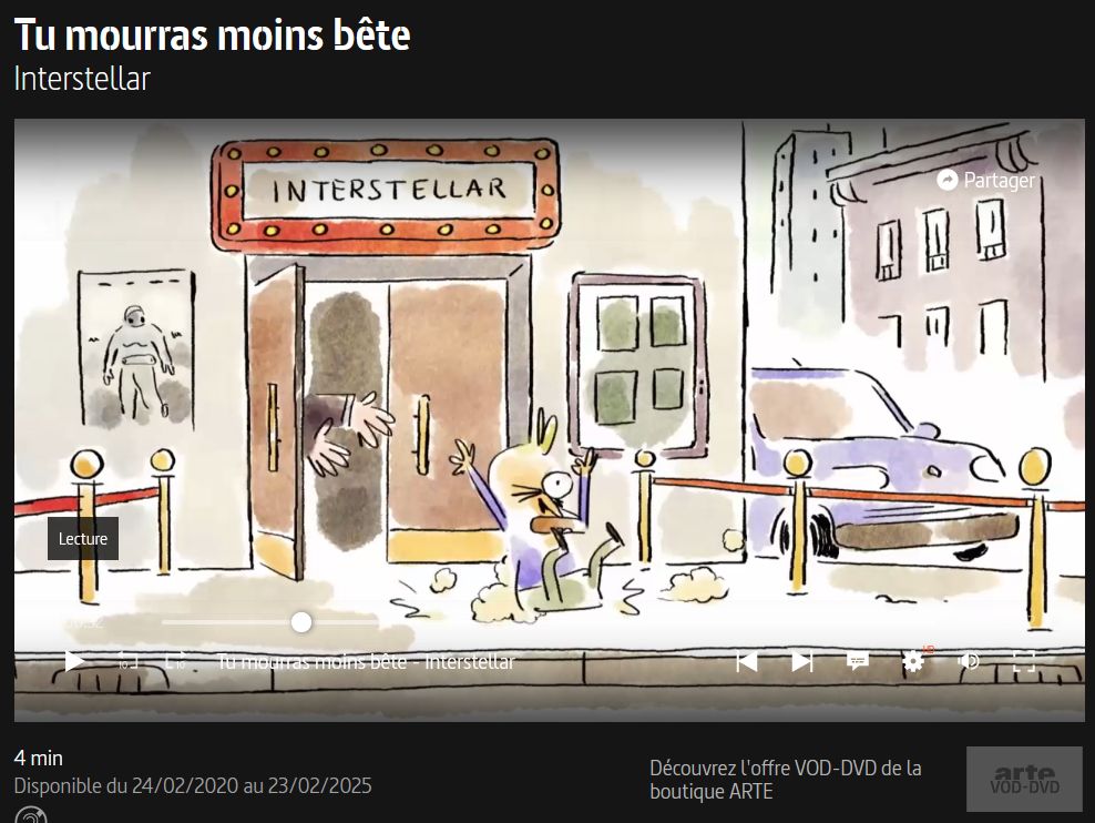 Pour ceux qui ont vu le film interstellar à la TV il y a quelques jours, voici une critique toute en humour tirée de la série "Tu mourras moins bête" d'arte visible sur arte.tv