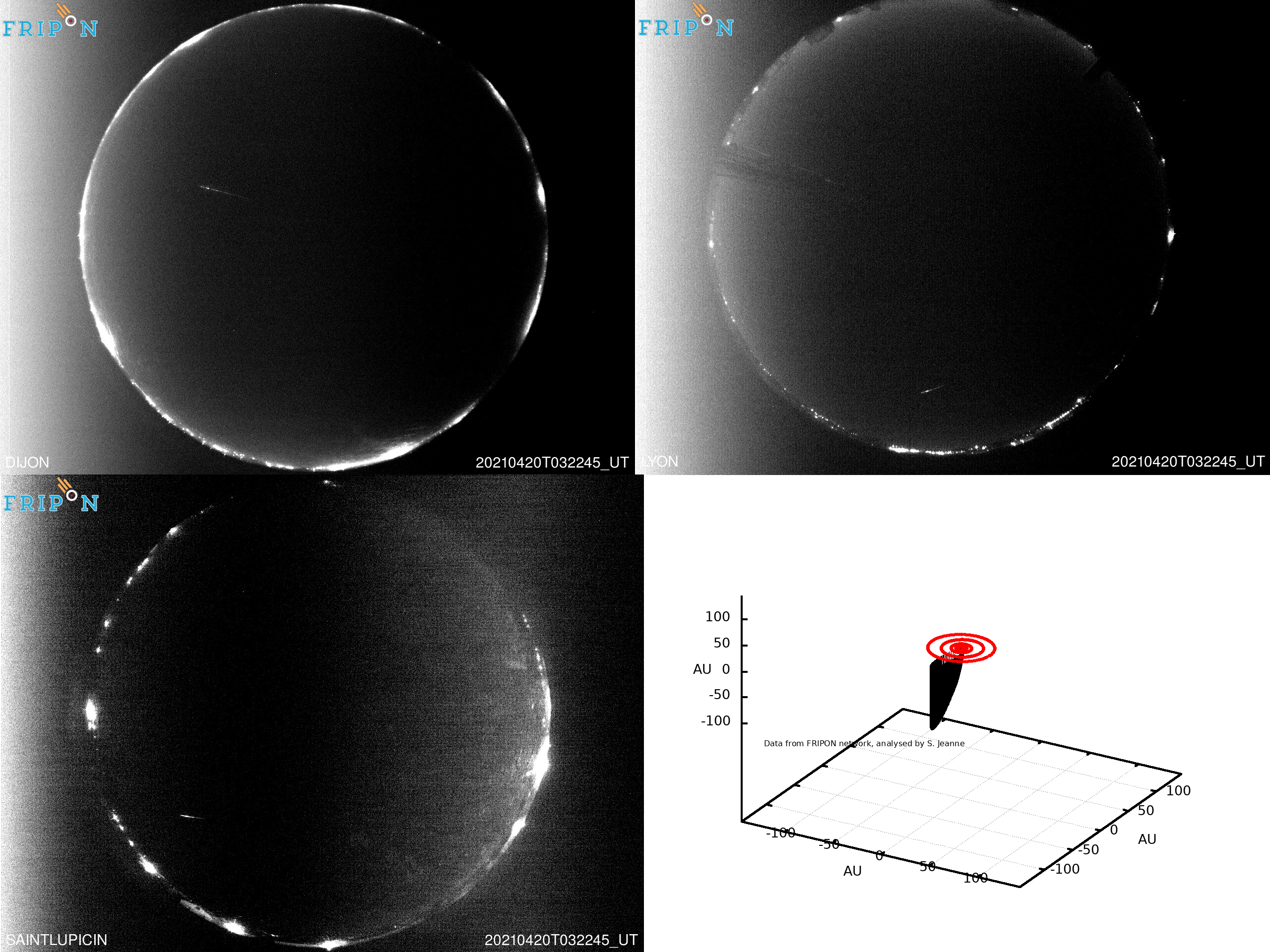 Petit bolide observé ce matin à 5h22 par 3 caméras Fripon, dont Dijon ! À noter son orbite très inclinée.