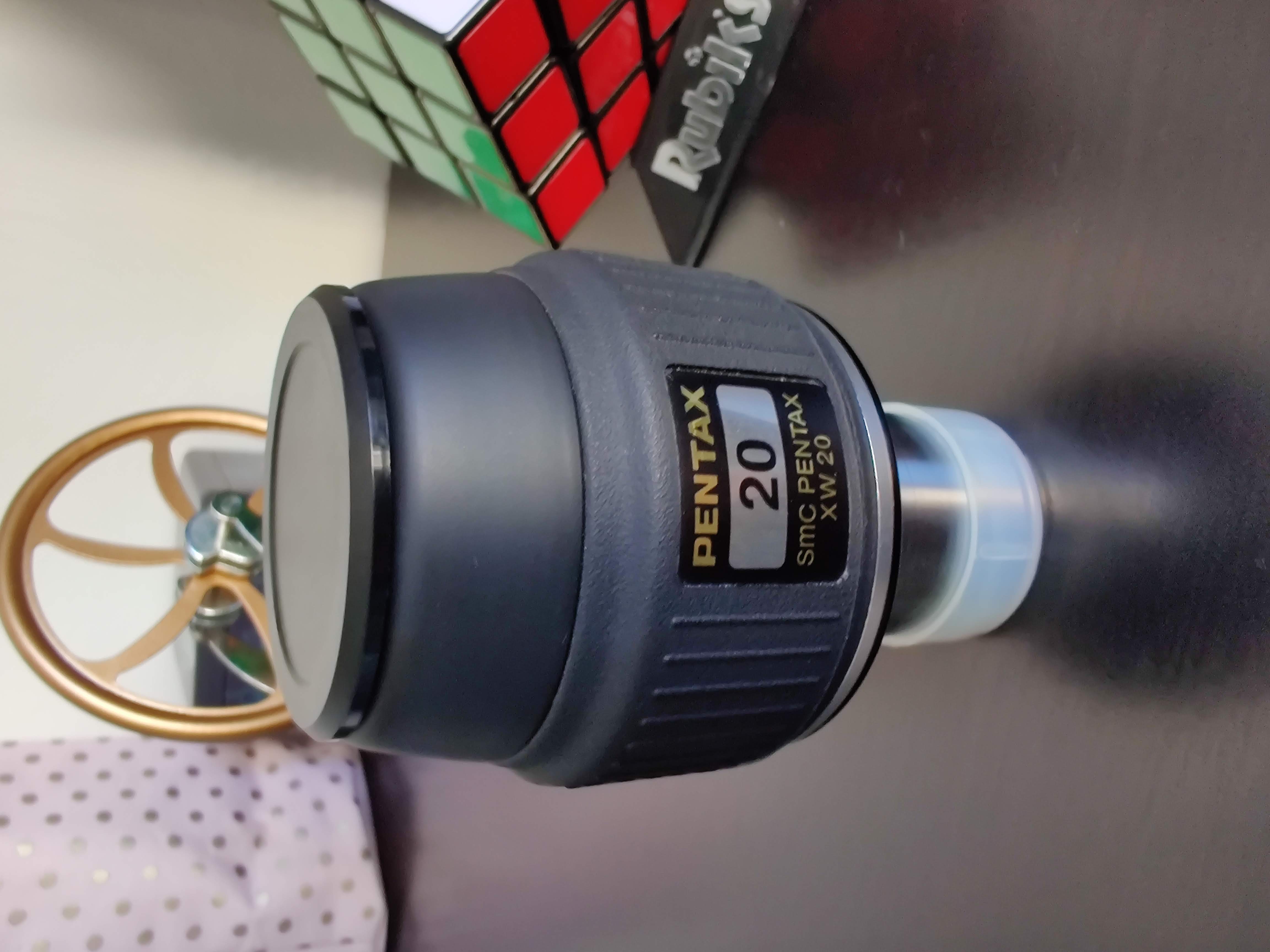 Un Pentax XW 20mm. La gamme qui se tire la bourre avec les Televue Delos mais avec un bien meilleur confort. Le relief d'oeil important permettrait d'observer avec des lunettes !!