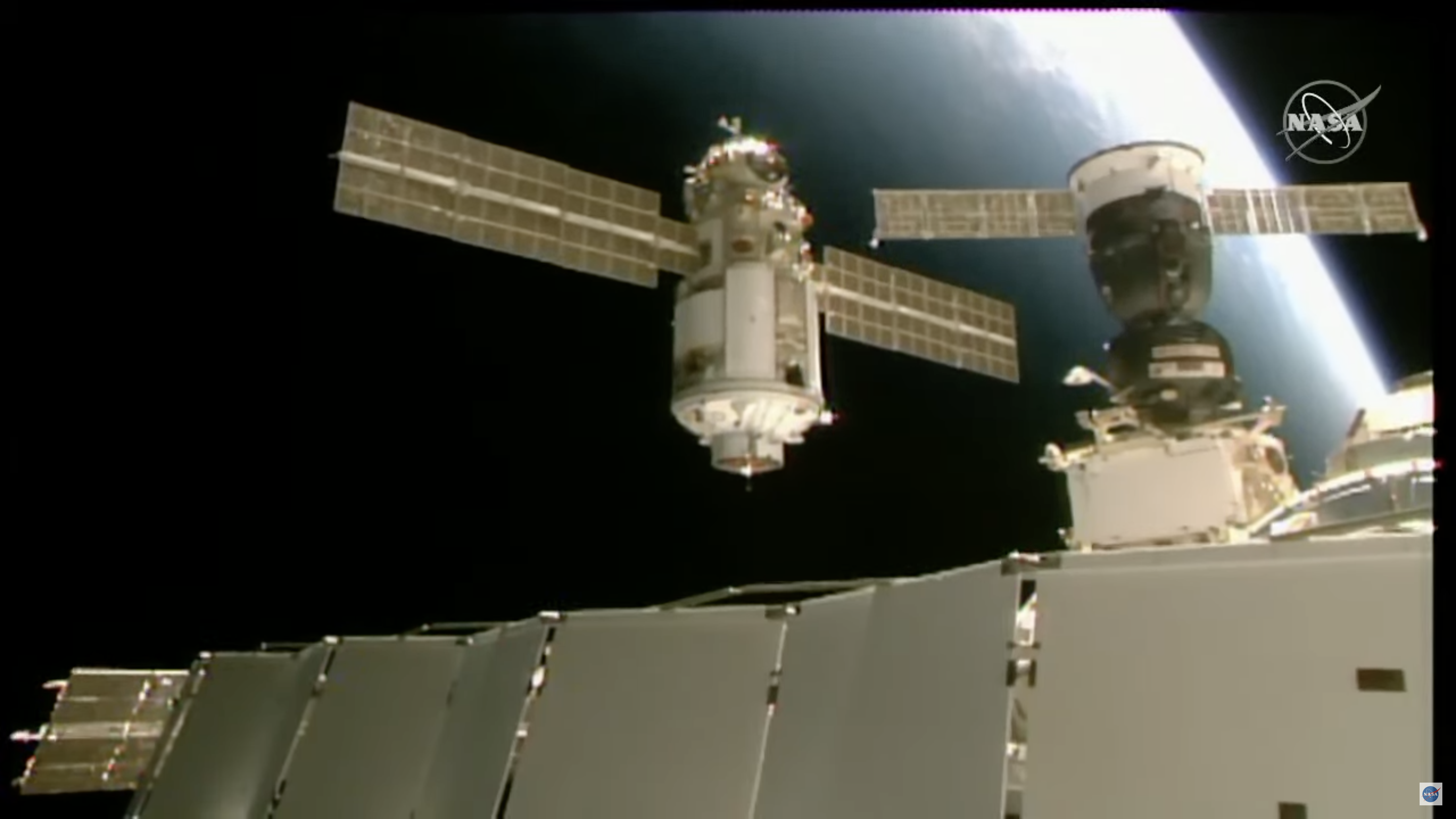 Bel arrimage de Nauka à l'ISS qui vient de ganger 80 m3 !
